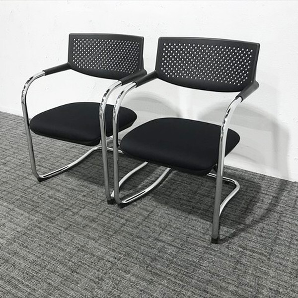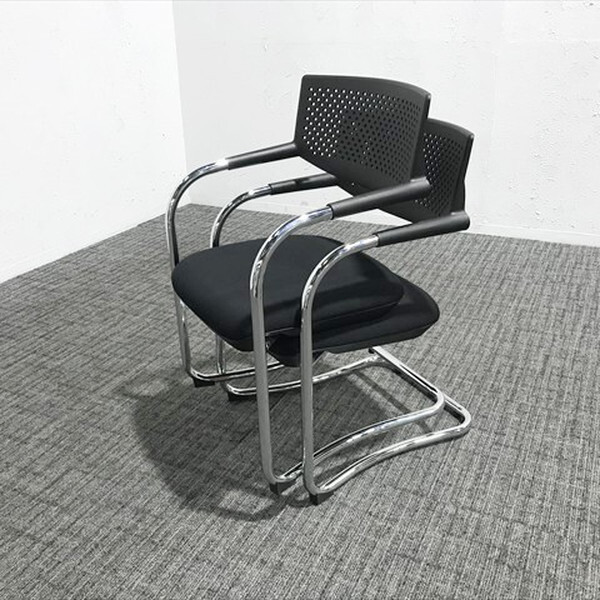 ■取り扱い番号 IS-877184A ■仕様 製品名 : スタッキングチェア 2脚セット 肘付 ザーマスII 色素材 : ブラック 外寸 : 幅550mm 奥行き600mm 高さ800mm ランク : Aランク ■特徴 背もたれ:樹脂 座面:布張り 肘:固定肘 フレーム:スチール クロームメッキ スタッキング可能脚数:2脚 曲線を活かしたR型の肘掛けが、立ち居の動作をスムーズにサポートします。脚の下部には滑り止め加工を施し、チェアの転倒を防止します。 |