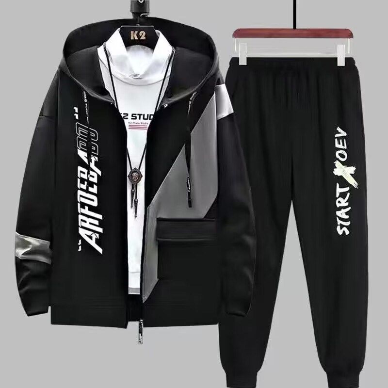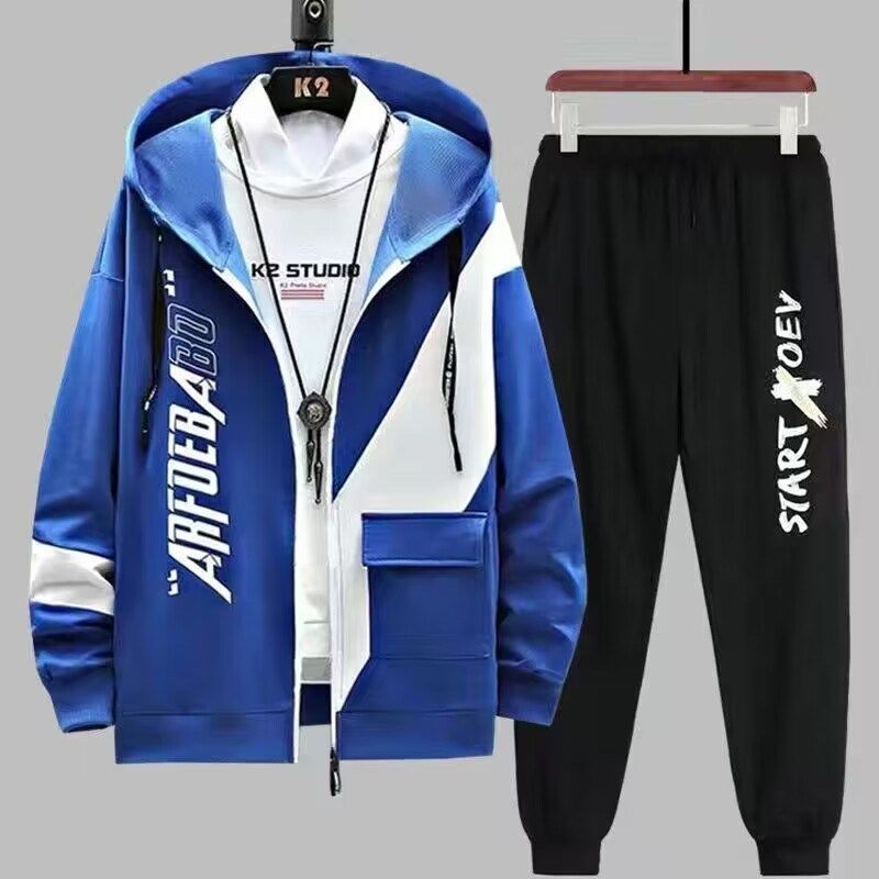 新作 前開き ボーイズ メンズジャージ スウェット 上下セット セットアップ カジュアル フード付き ブルー黒白 3色 M~3XLサイズ選択可