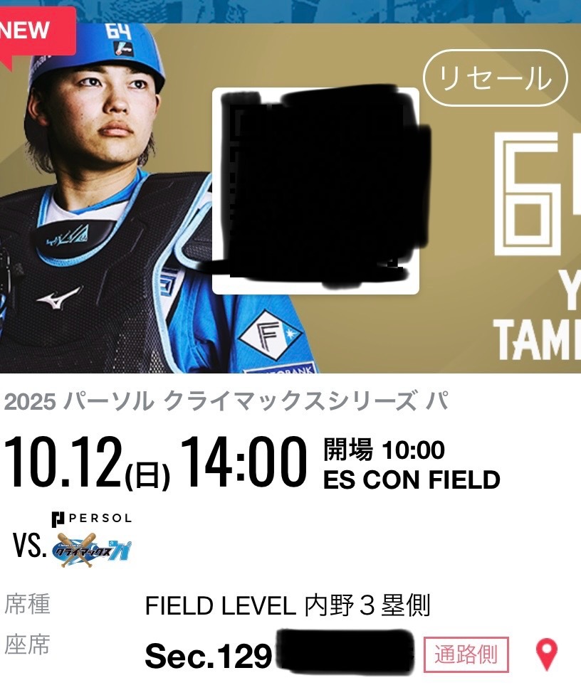 座席はダイヤモンドクラブシートの隣のsecです。