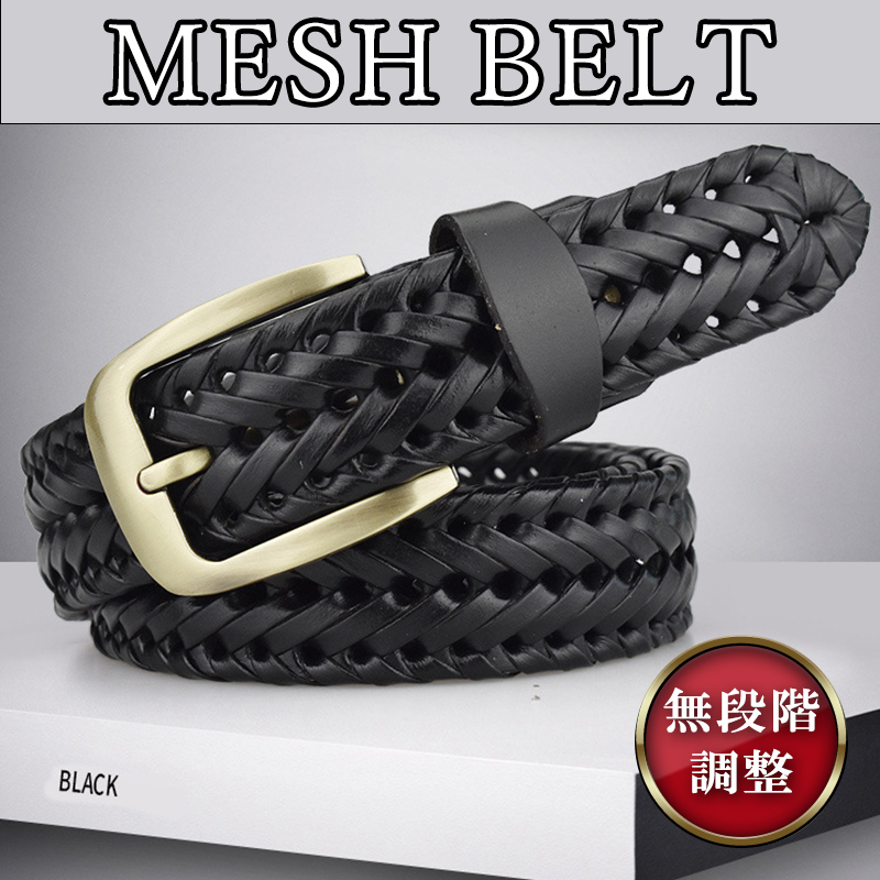 ベルト メンズ 黒 ブラック メッシュベルト ゴルフベルト カジュアルベルト ビジネスベルト レザーベルト 紳士 フォーマル 高級 おしゃれ