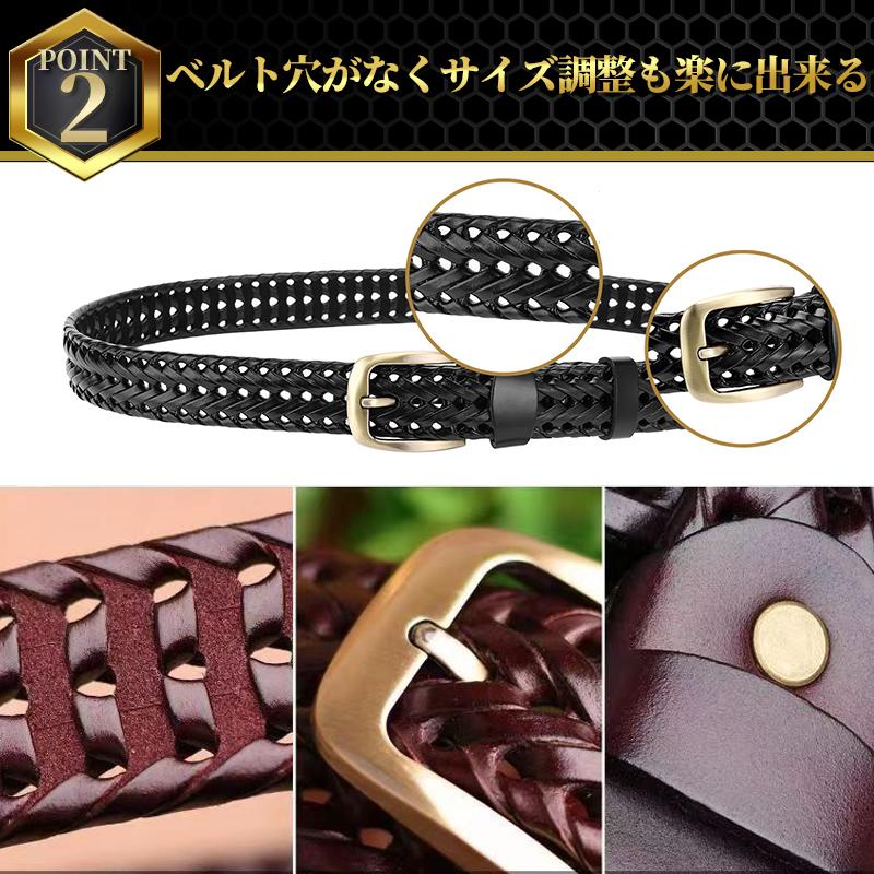 ◎メッシュ編みなのでベルト穴がなく、サイズ調整も楽に出来ます。