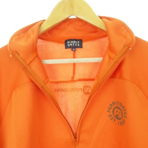 パーリーゲイツ PEARLY GATES ポロシャツ 半袖 ハーフジップ メッシュ生地 ロゴ ワンポイント ゴルフ 4 M オレンジ /AH13 ■GY18