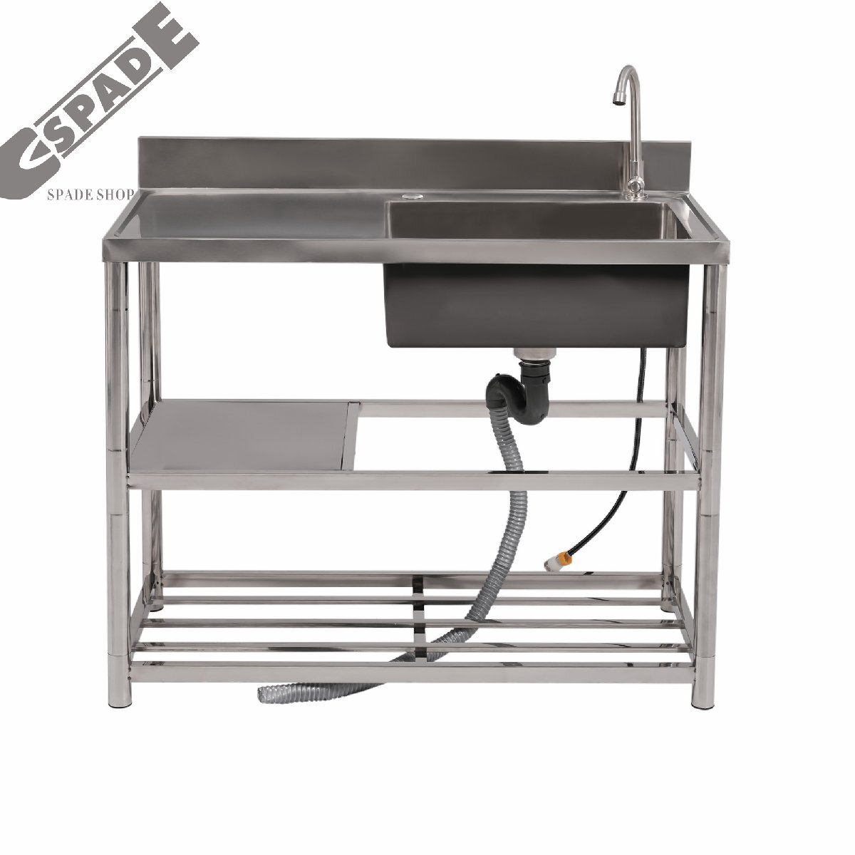 【国内発送】屋外 流し台 ステンレス ガーデンシンク 作業台 キッチン 台所 屋外 簡易 シンク 組み立て簡単 収納棚付 庭 高さ調節 調理台