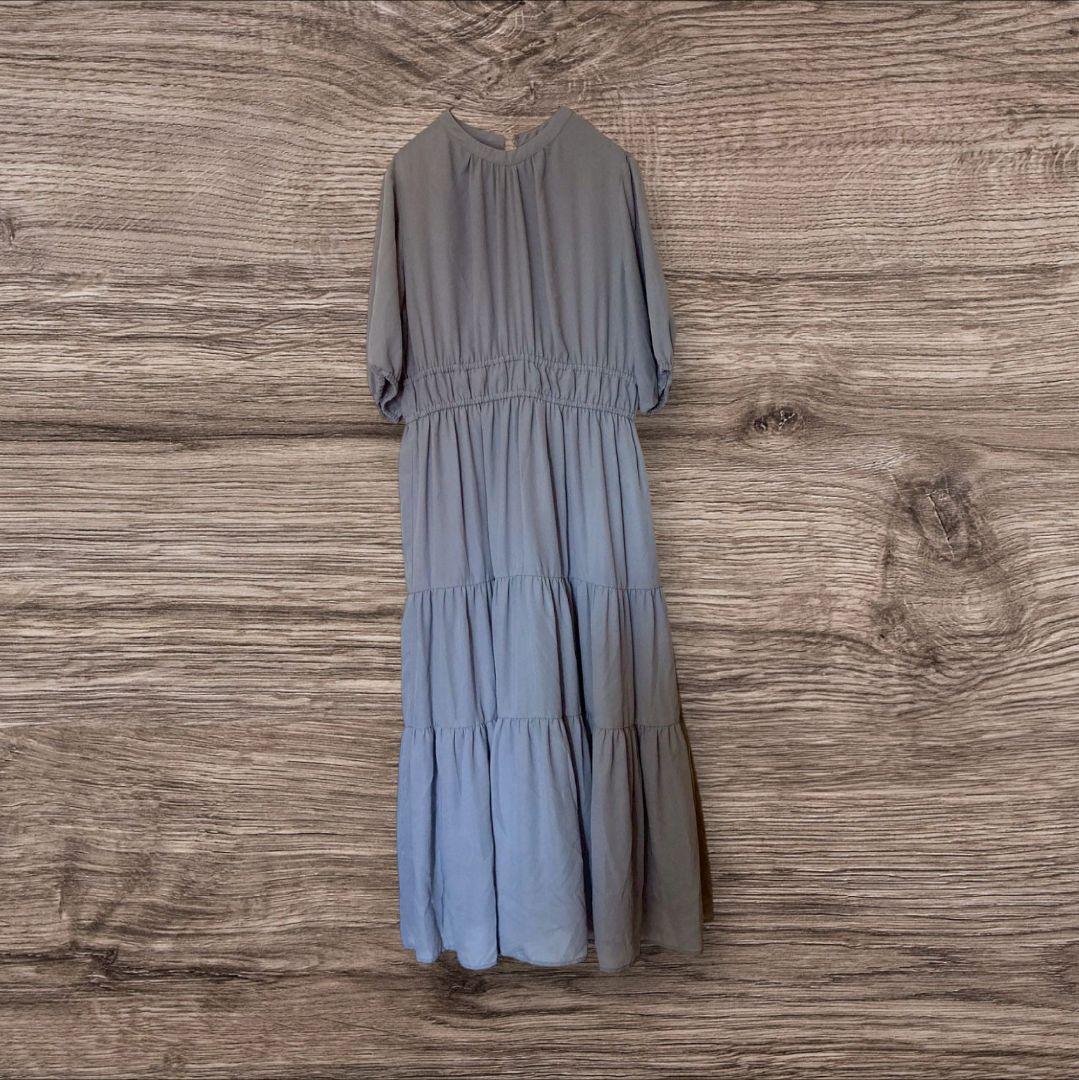 トレンドのくすみブルーが上品で大人可愛い印象。