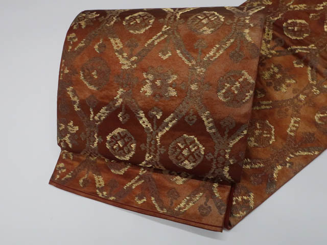 リサイクル商品ではございますが、大変良い状態のお品です。 地色は茶です。 1枚目の画像が近いお色かと思われます。 素材は正絹です。 |