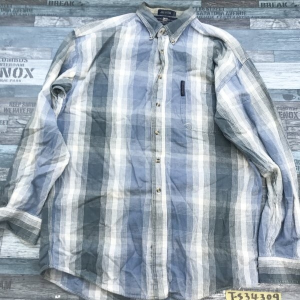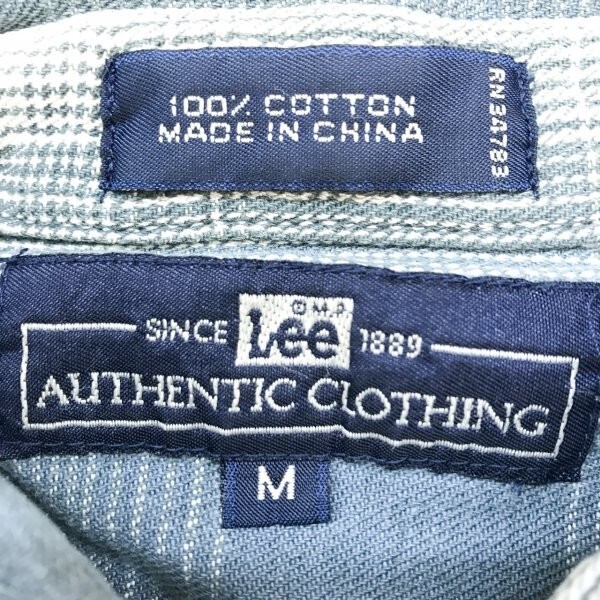 LEE リー メンズ コットン100% チェック柄 ボタンダウン 長袖シャツ M グレー青 です。