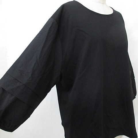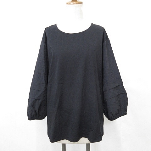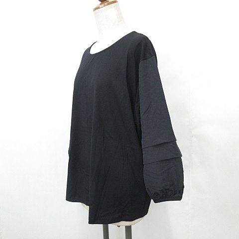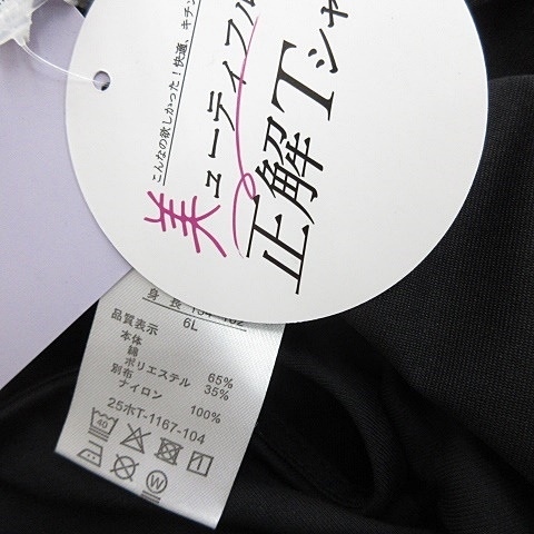 未使用品 カットソー Tシャツ 八分袖 丸首 ドロップショルダー 綿 大きいサイズ 黒 ブラック 6L レディース