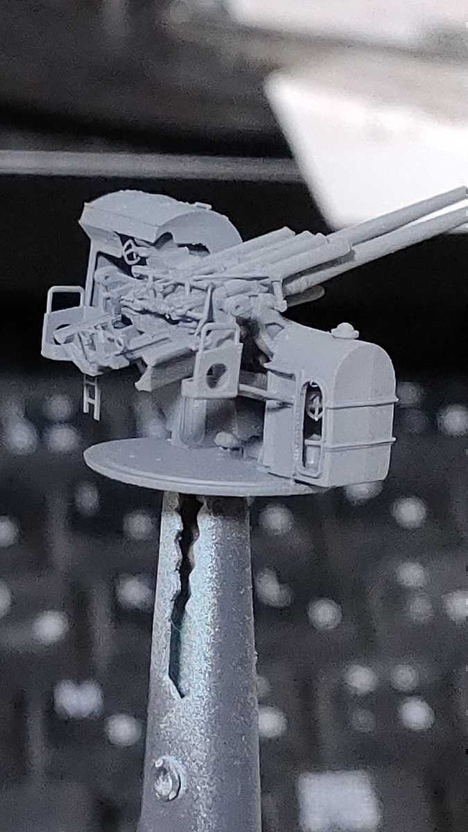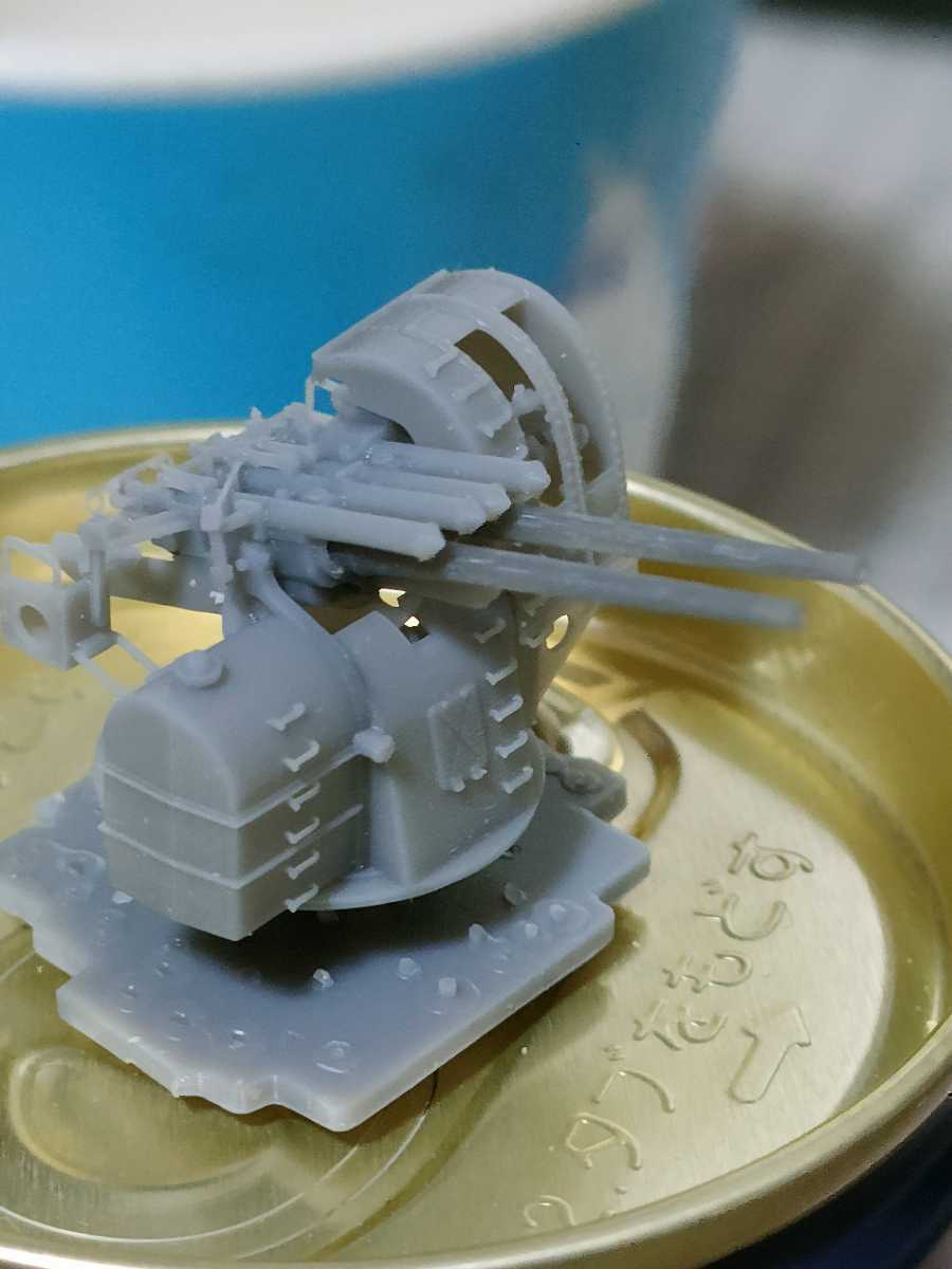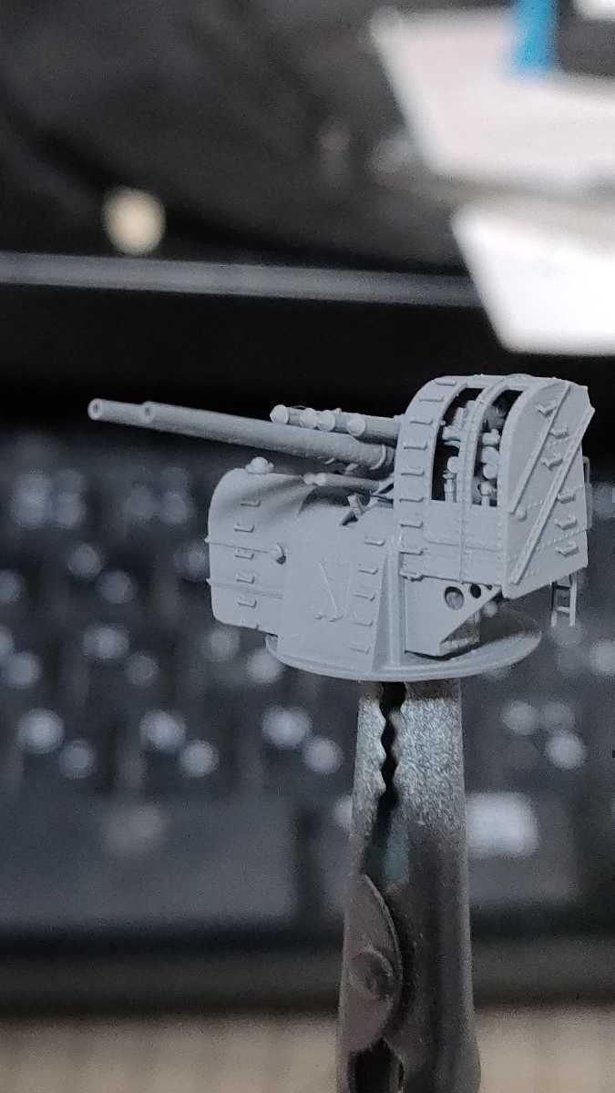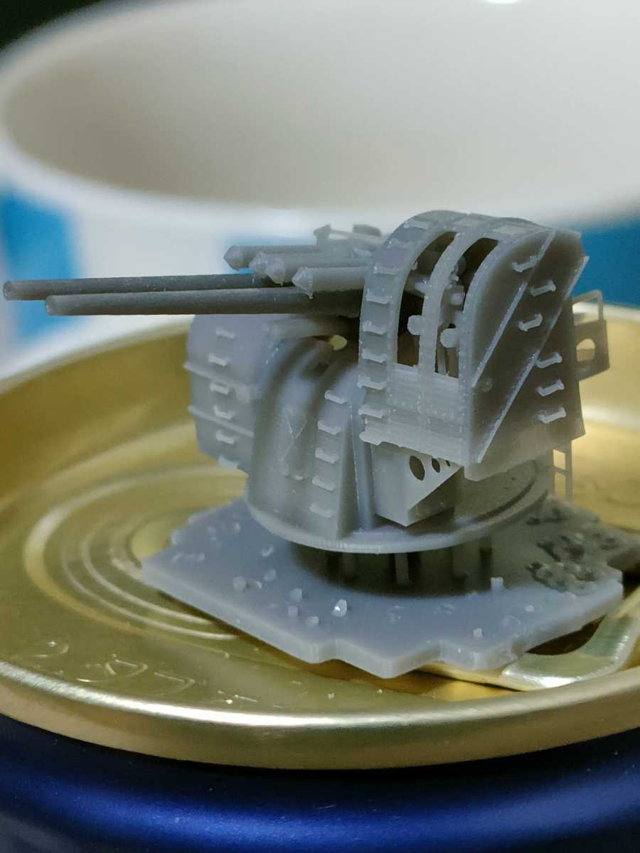 1/200 大日本帝国海軍 89式12.7cm連装高角砲 6基set (艦これ ニチモ フジミ)です。仰角は固定です。商品は7枚目の画像のとおり、サポートが付いたままの発送になります。予備を2基付けています。3Dプリンターと言えどあくまで家庭用なので商品のひずみや多少の加工があることをご理解してください。ノークレームノーリターンでよろしくお願いします。
