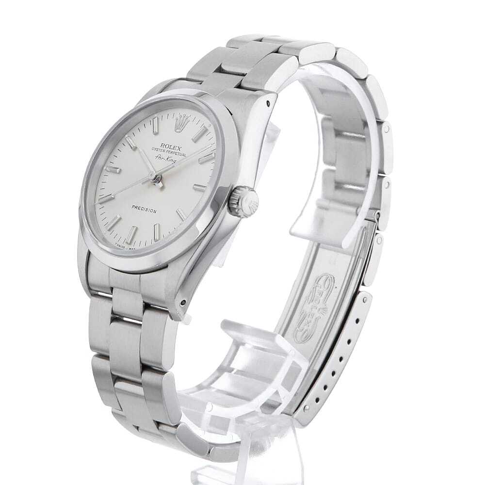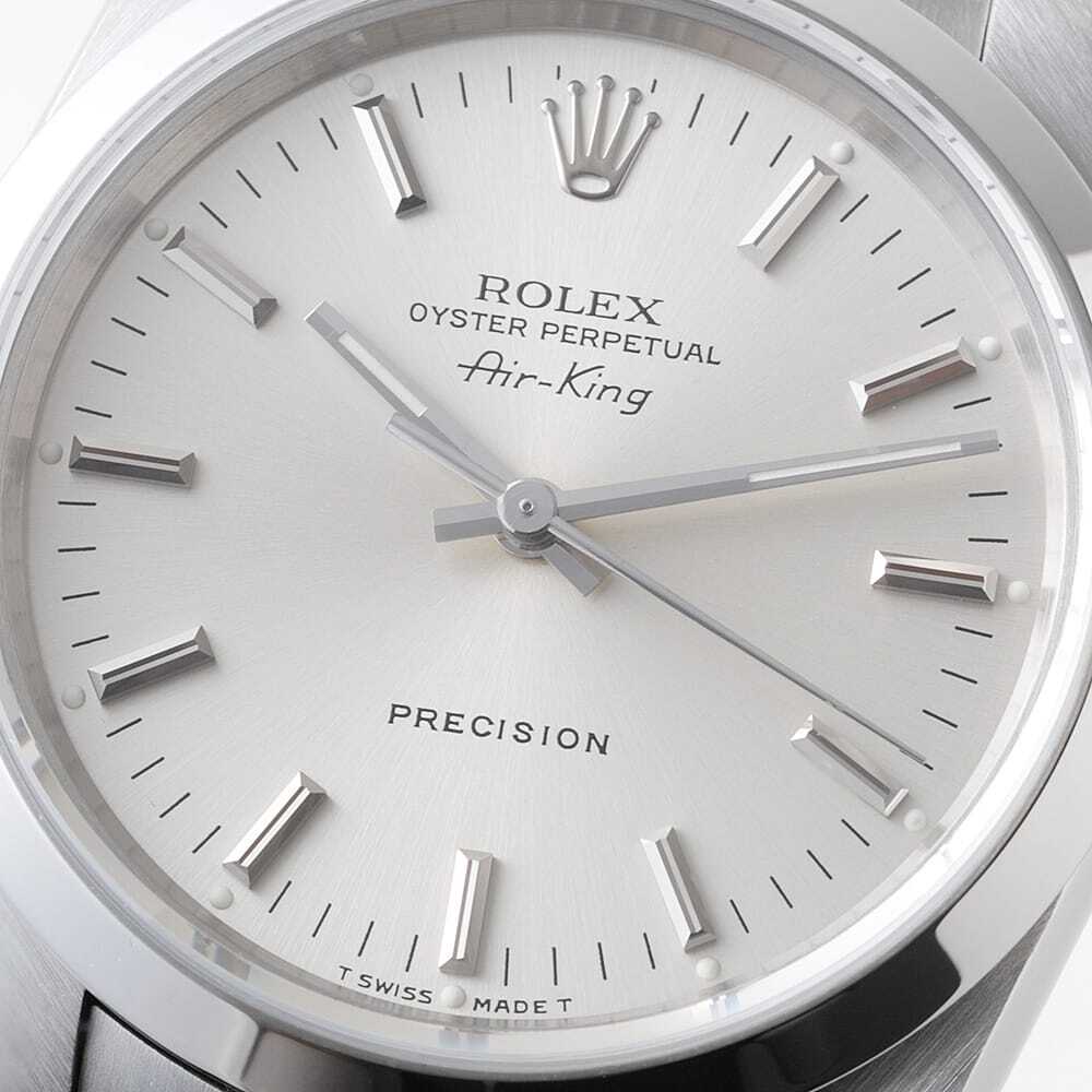 | モデル情報 | エアキング Ref.14000です。デイト付きのモデルが多い中で、このエアキングのシンプルなディテールは希少です。シンプルなデザインゆえに、時と場所・服装を選ばず、あらゆる場面で活躍できることや飽きずに愛用できることから、廃番となった今でも根強い人気を誇ります。 |