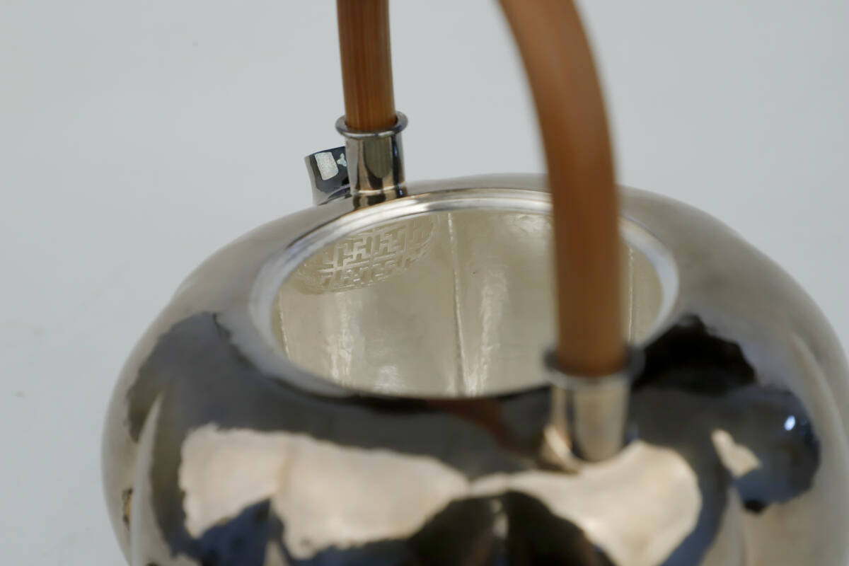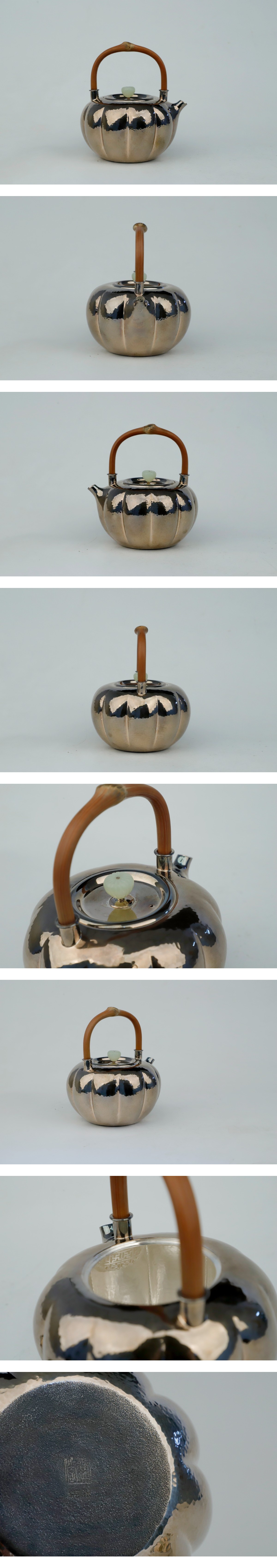 時代 純銀製 尚美堂造 カボチャ 玉摘 南瓜形 湯沸 工芸品 古美術品 銀瓶 煎茶道具