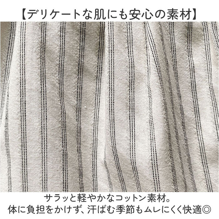 ・お肌に馴染むカラーに、ストライプデザイン。優しい風合い&カジュアルライクな仕上がり。