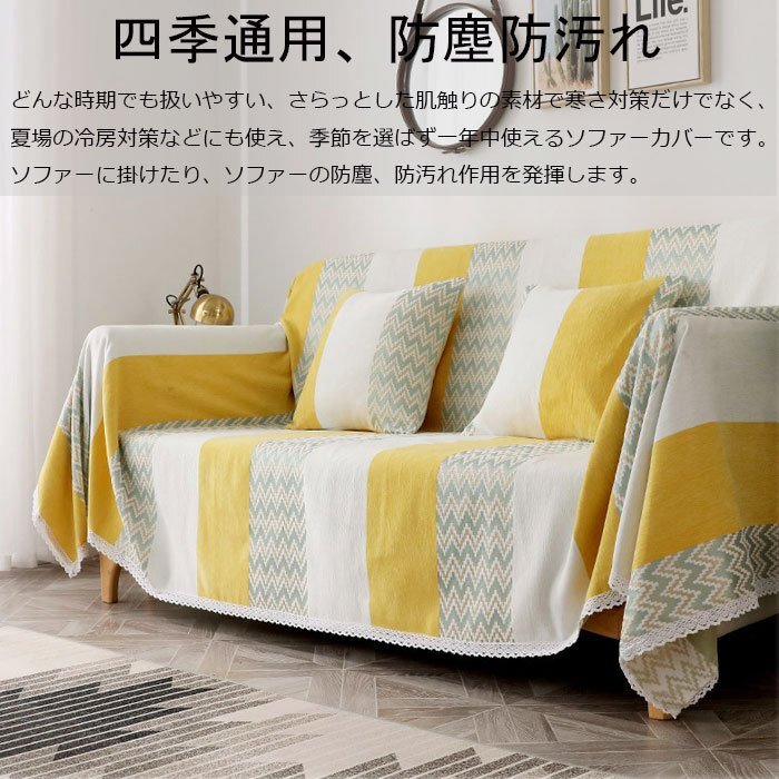 【四季通用、防塵防汚れ】どんな時期でも扱いやすい、さらっとした肌触りの素材で寒さ対策だけでなく、夏場の冷房対策などにも使え、季節を選ばず一年中使えるソファーカバーです。ソファーに掛けたり、ソファーの防塵、防汚れ作用を発揮します。