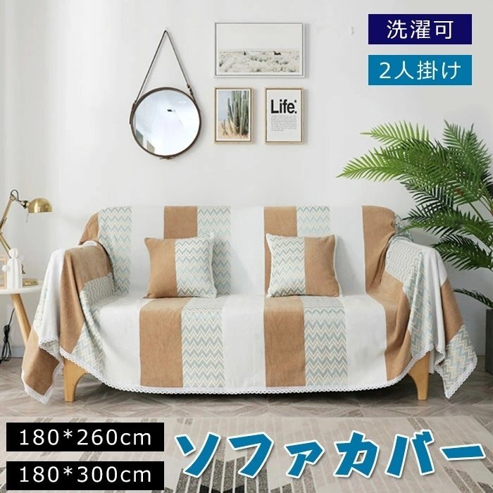 ソファーカバー 2人掛け 肘あり 長方形 ベッド こたつカバー 一体型 北欧風 180*260cm/180*300cm 防塵 汚れ防止 ☆カラー/3色選択/1点