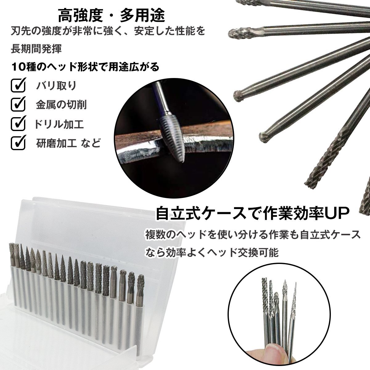 商 品 説 明ヘッドに超硬のタングステンを使用したロータリーバーの20本セットです。