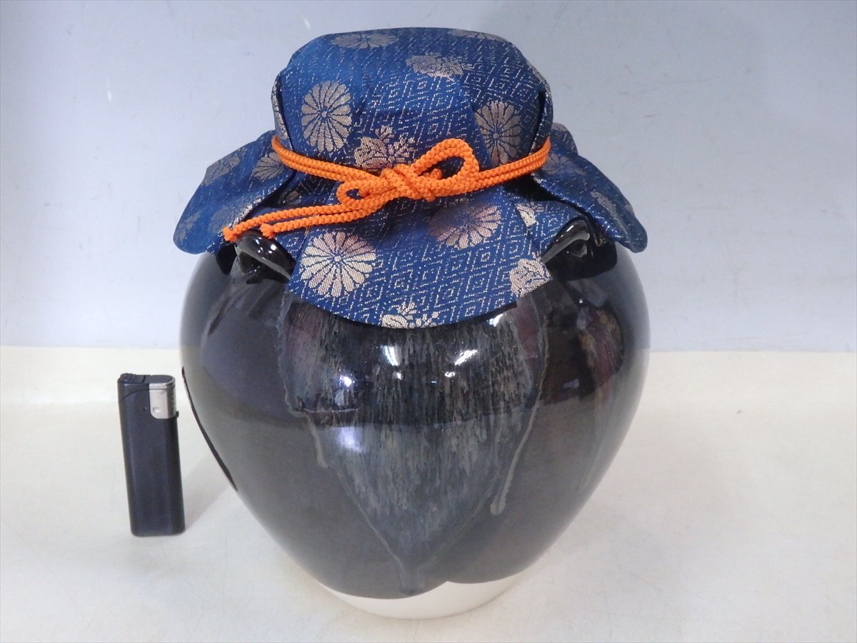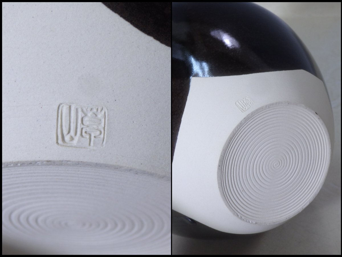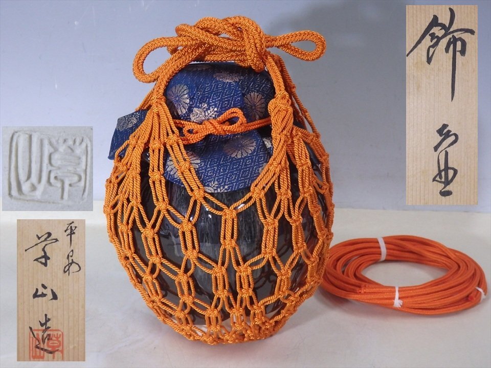 ★状態良好!平安 草山造【京焼 飾壷 共箱】網・紐付き 万代草山 胴径19.5cm 高さ24.5cm 茶道具 茶器