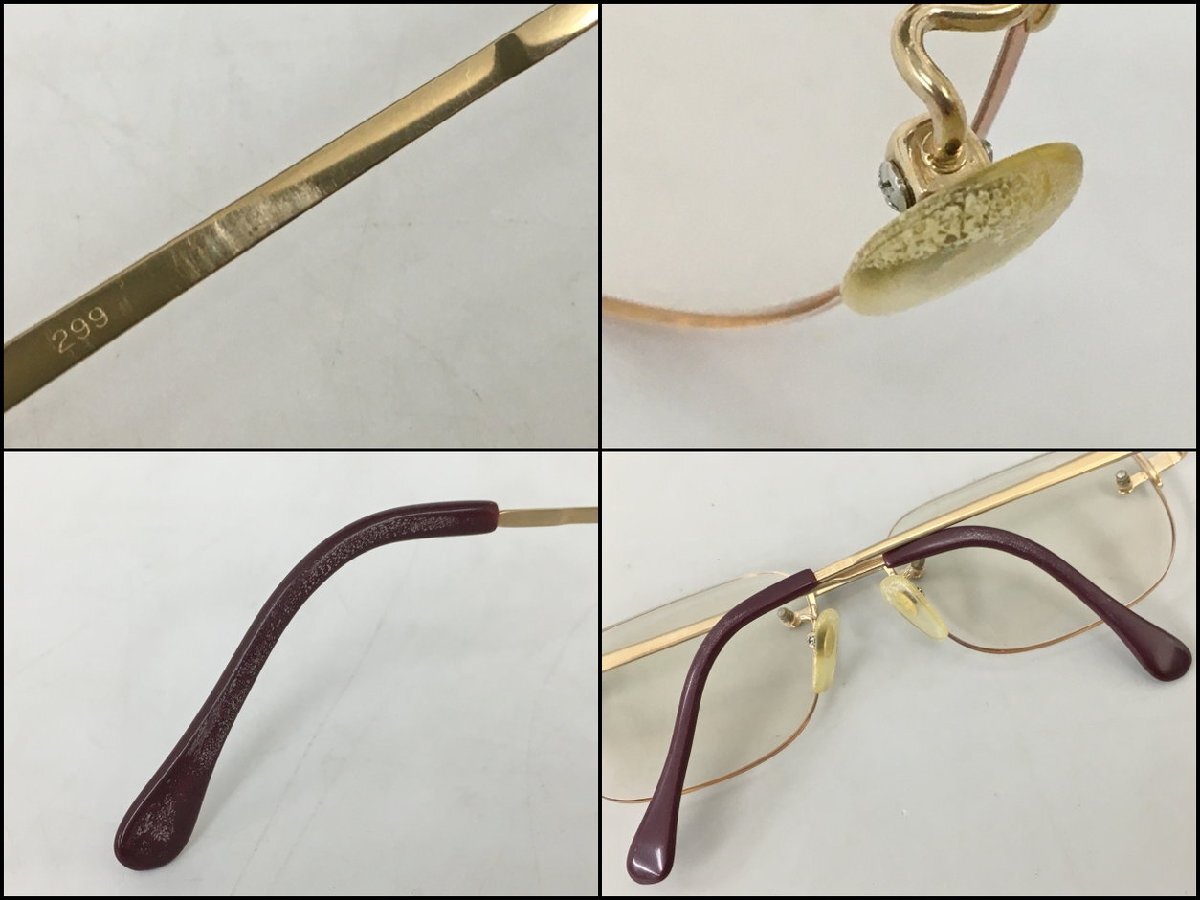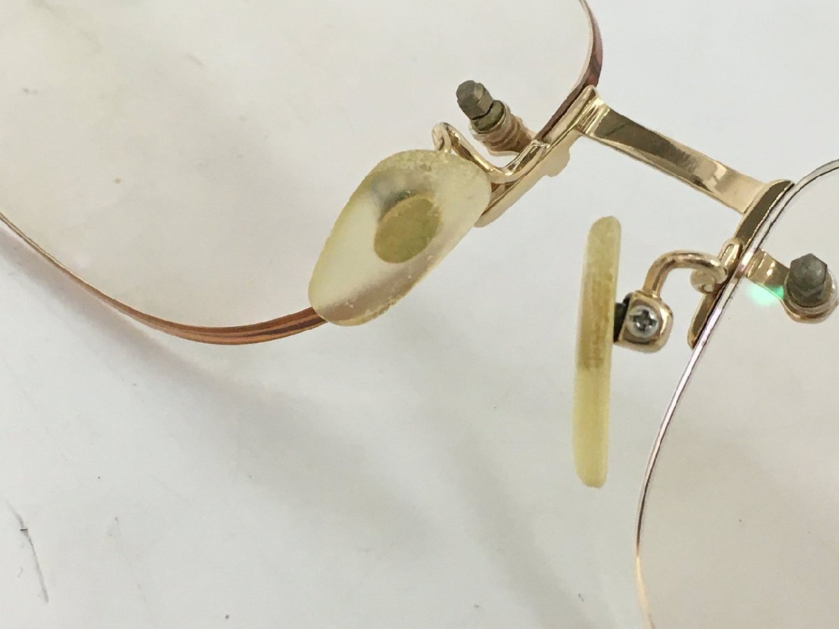 ノーズパッドやモダンに劣化や変色があり、フレームやテンプルにスレ・くすみがございます。