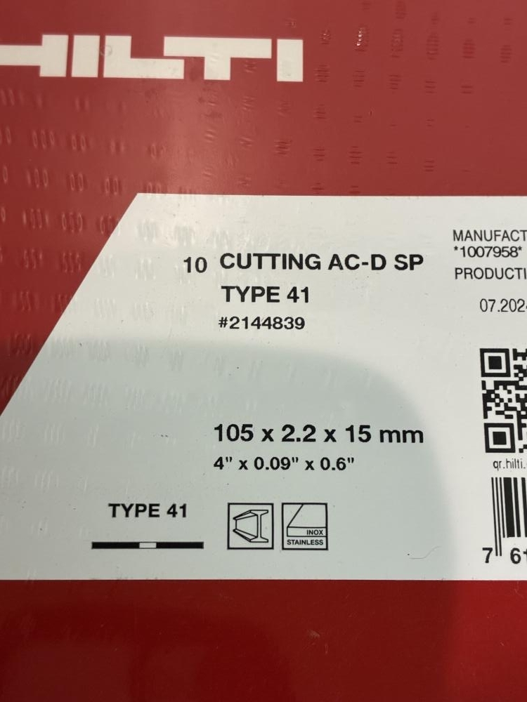 HILTI ヒルティ ■商品名 切断砥石 10枚入り ■型番 TYPE41 |