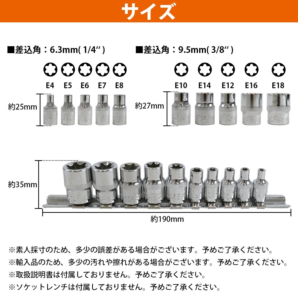 E型 トルクス レンチ ソケット セット 星形 花型 E4/E5/E6/E7/E8/E10/E12/E14/E16/E18 [差込角 1/4 3/8] ヘックスローブ メス