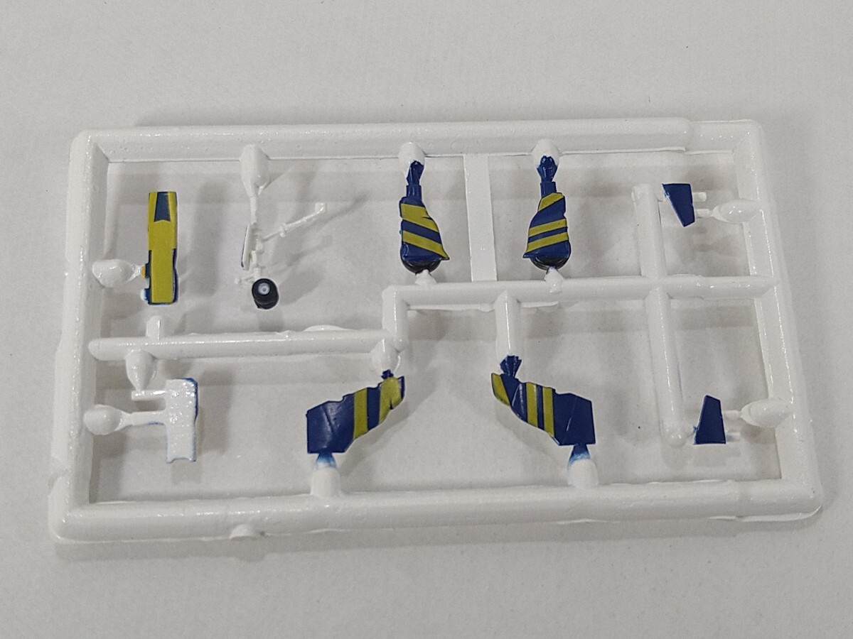 外箱開封後、内装スリーブを一部カットして未組立のまま専用ケースに入れて暗所保管していました。展示等の履歴はありません。写真撮影のため一旦スリーブから出しました。別保管していた外箱を部分カットして同梱します。
