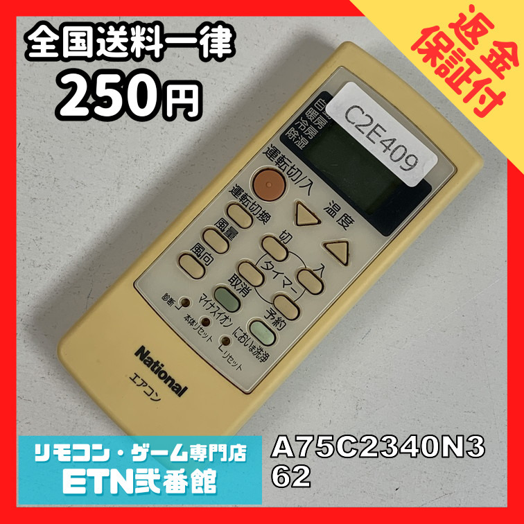 C2E409 【送料250円】エアコン リモコン / National ナショナル A75C2340N362 冷房 暖房 動作確認済み★即発送★
