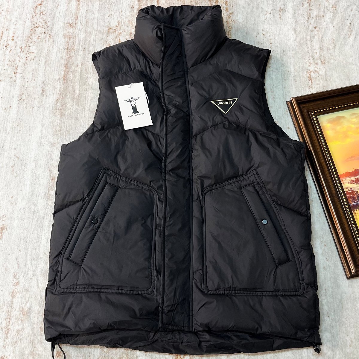 一枚限定 ダウンベスト ロンドン製造 ダックダウン90% 防寒 軽量 ソフト 立ち襟 無地 カジュアル アウター ダウンジャケット 秋冬 SIZE:M