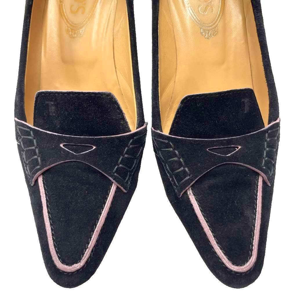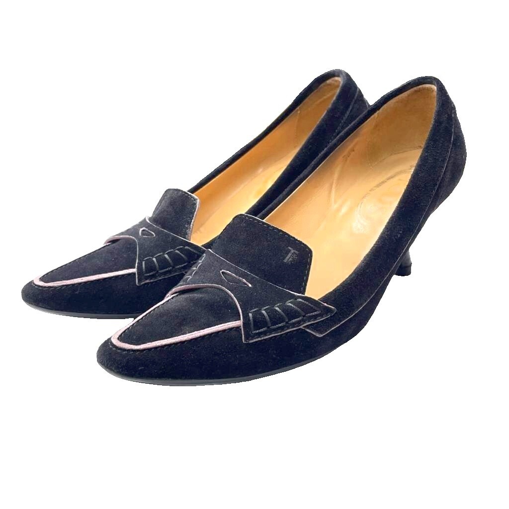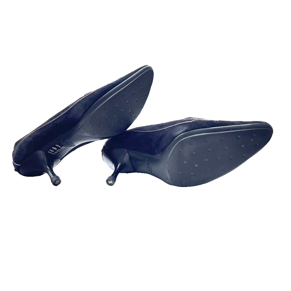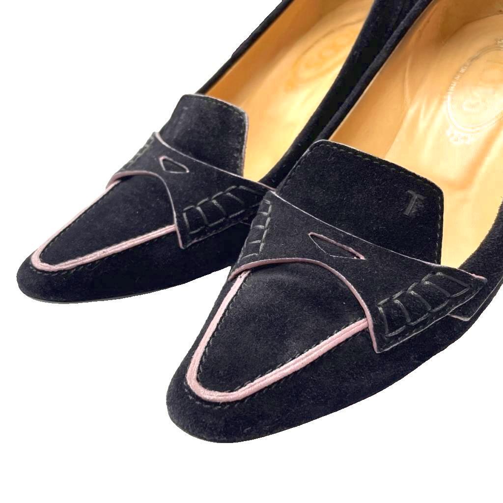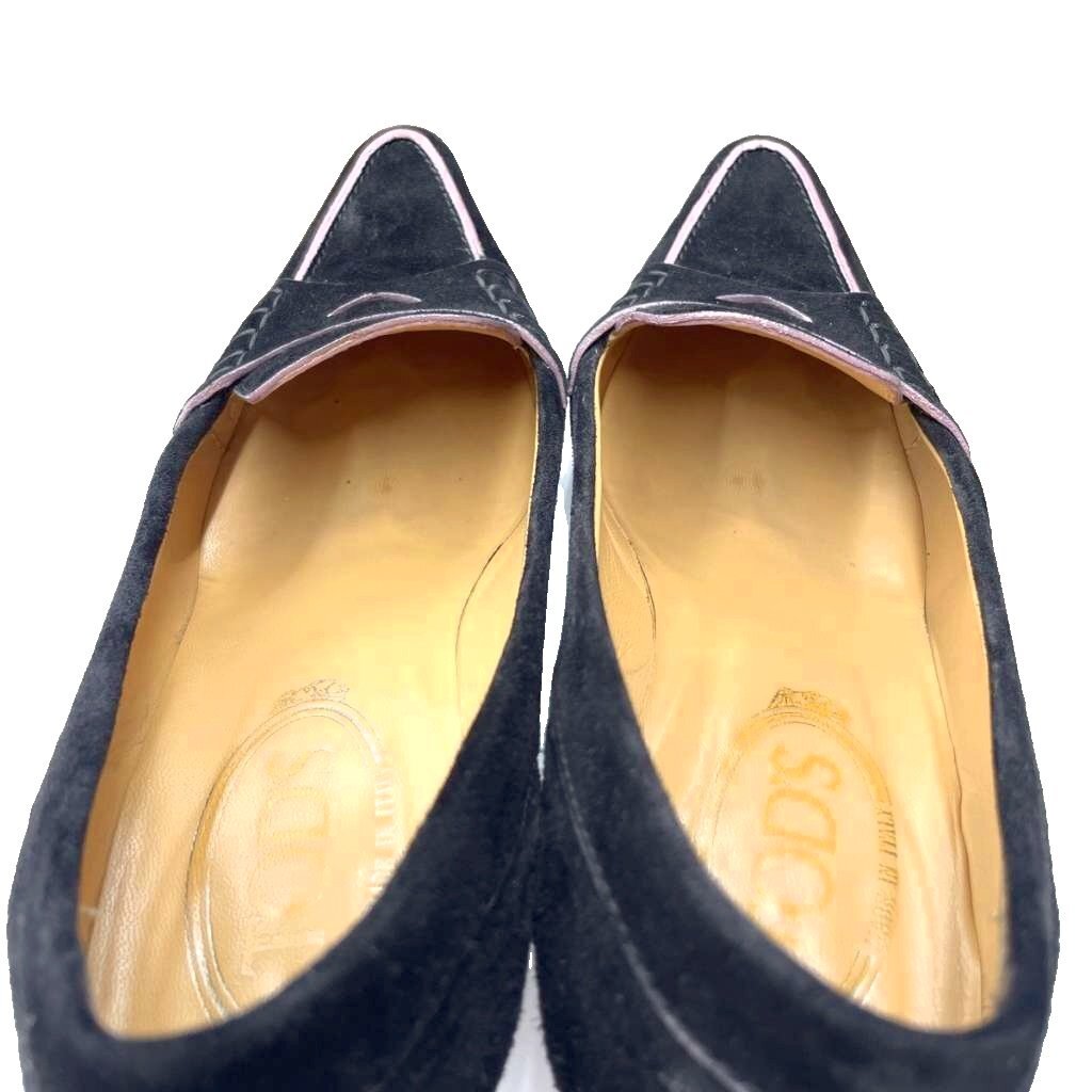 トッズ TOD'S スエード パンプス ピンヒール ポインテッドトゥ 36.5 黒 ブラック レディース