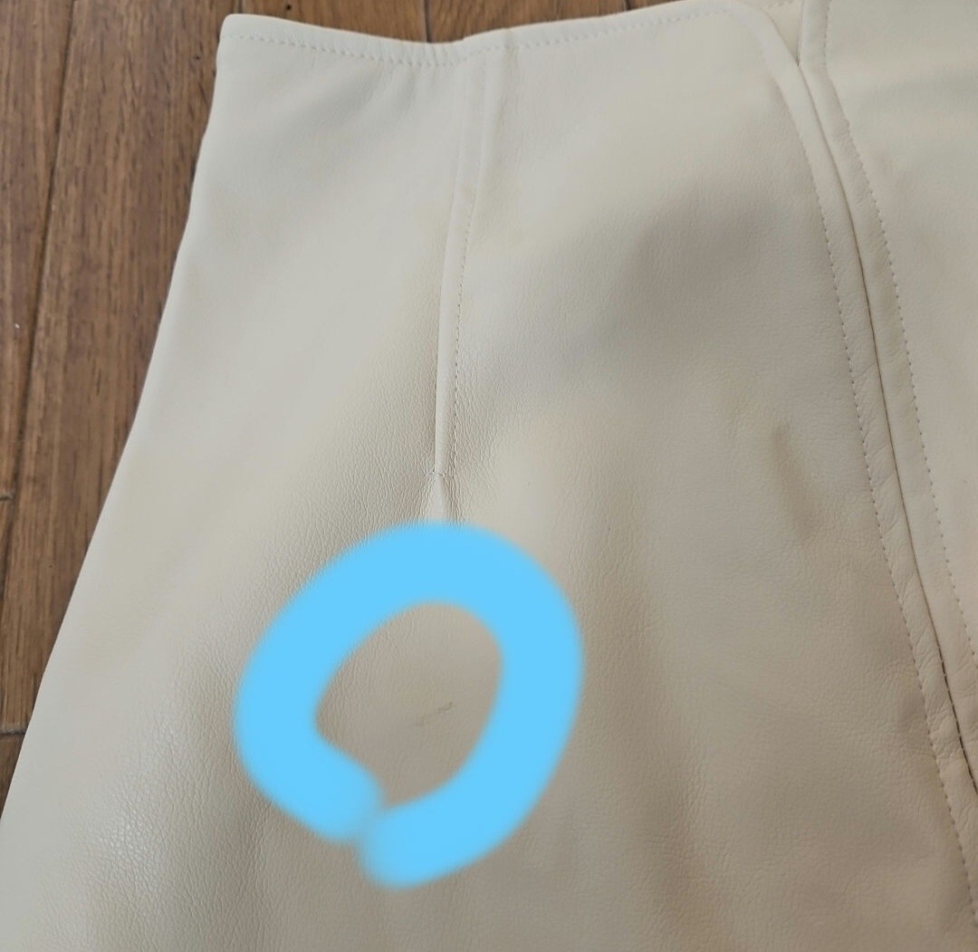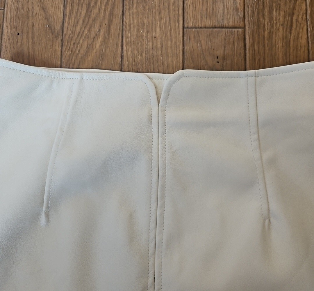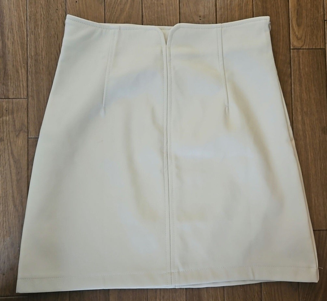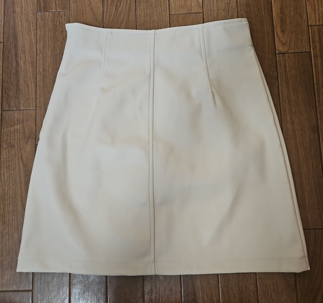 フェイクレザーのミニスカートです。タイトなシルエットでスタイルアップ効果も期待できます。