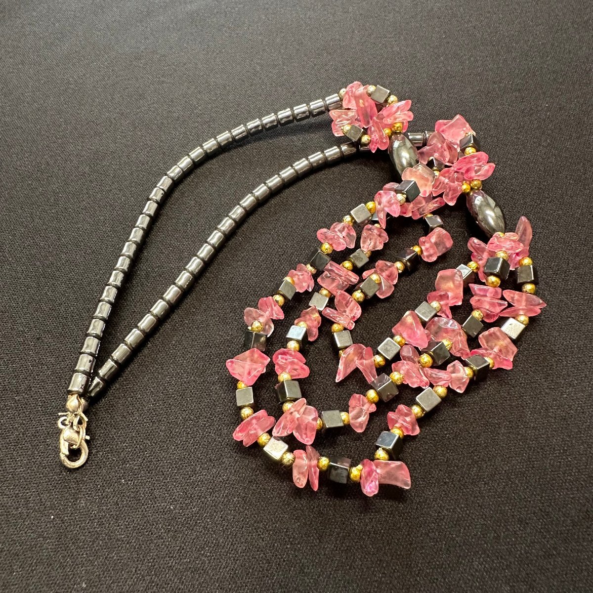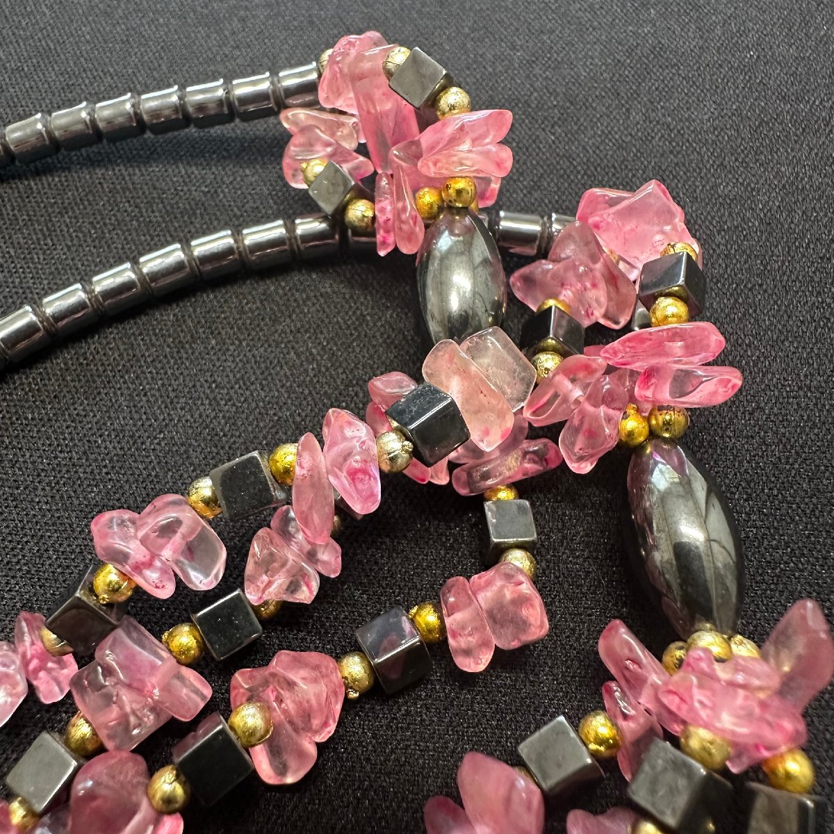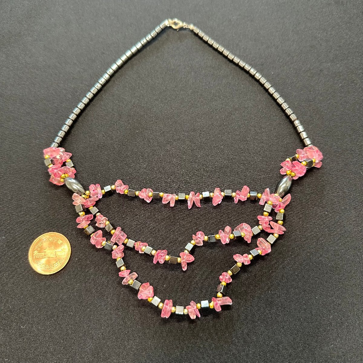 q4076 ヴィンテージ ヘマタイト/水晶/天然石 ネックレス ペンダント アクセサリー 上品 華やか