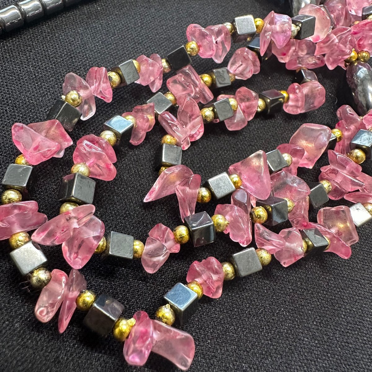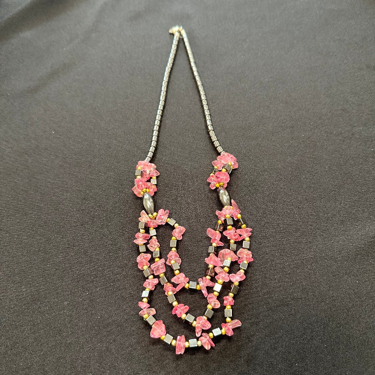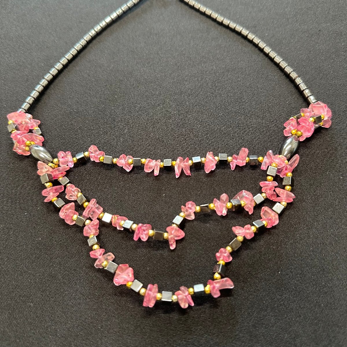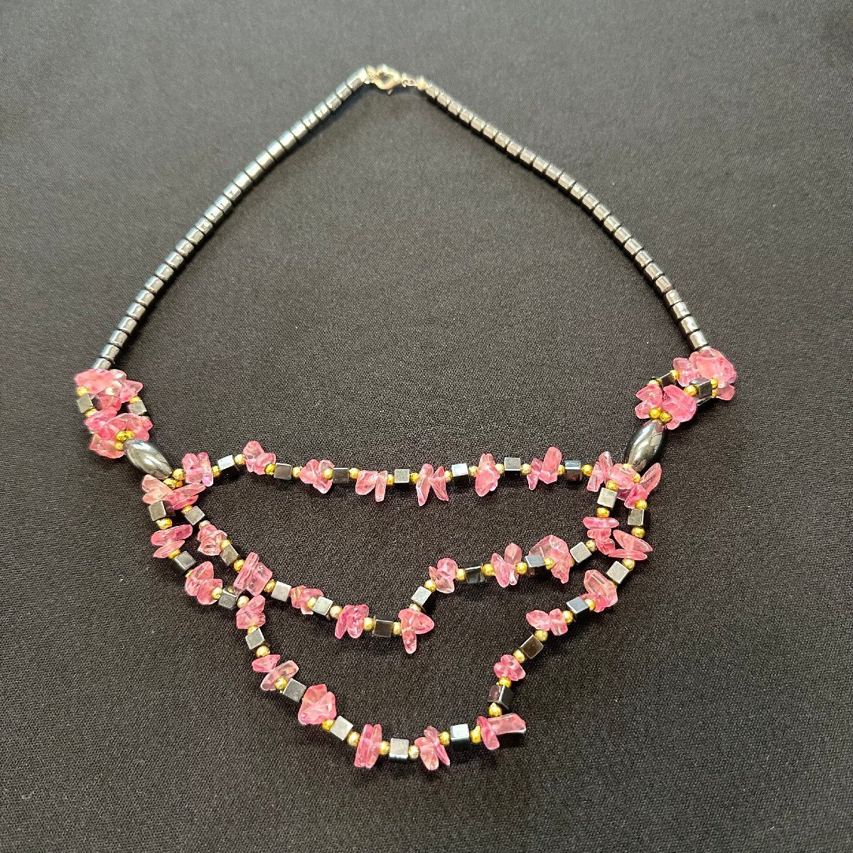 q4076 ヴィンテージ ヘマタイト/水晶/天然石 ネックレス ペンダント アクセサリー 上品 華やか