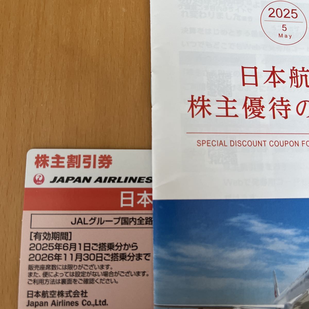JAL株主優待券1枚、2025.6.1〜2026.11.30迄有効