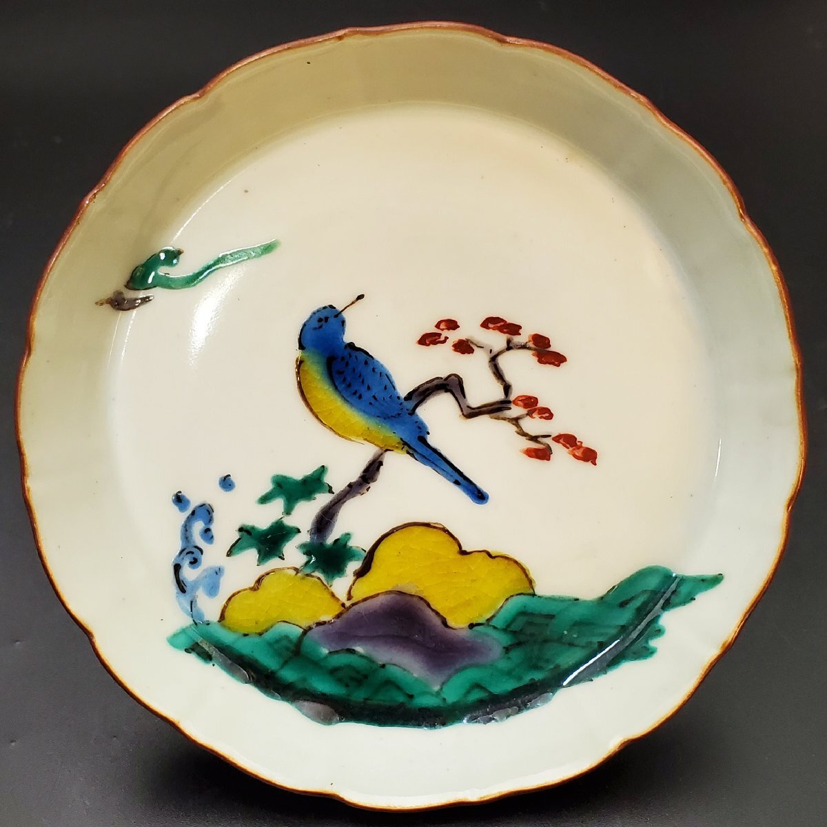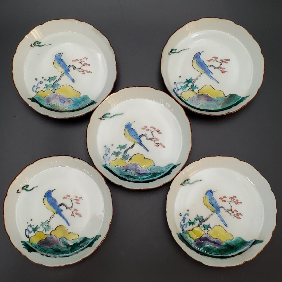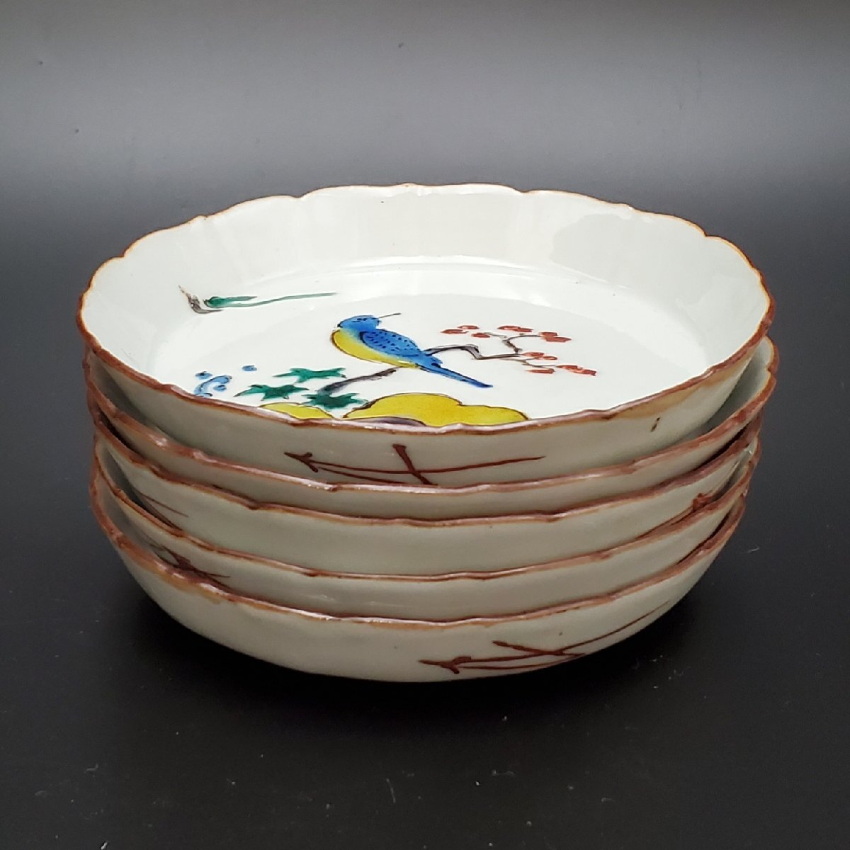 【宝蔵】時代物 九谷焼 花鳥色絵小皿 5客 約11.5cm ③