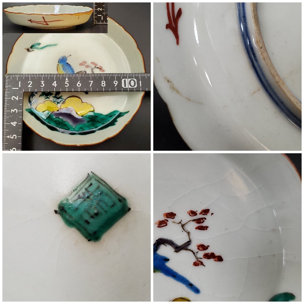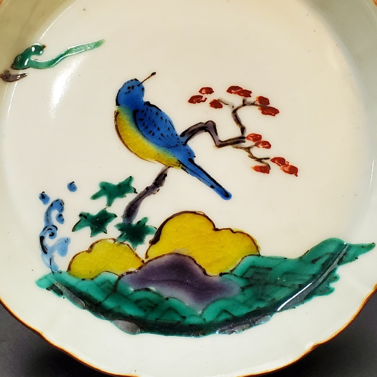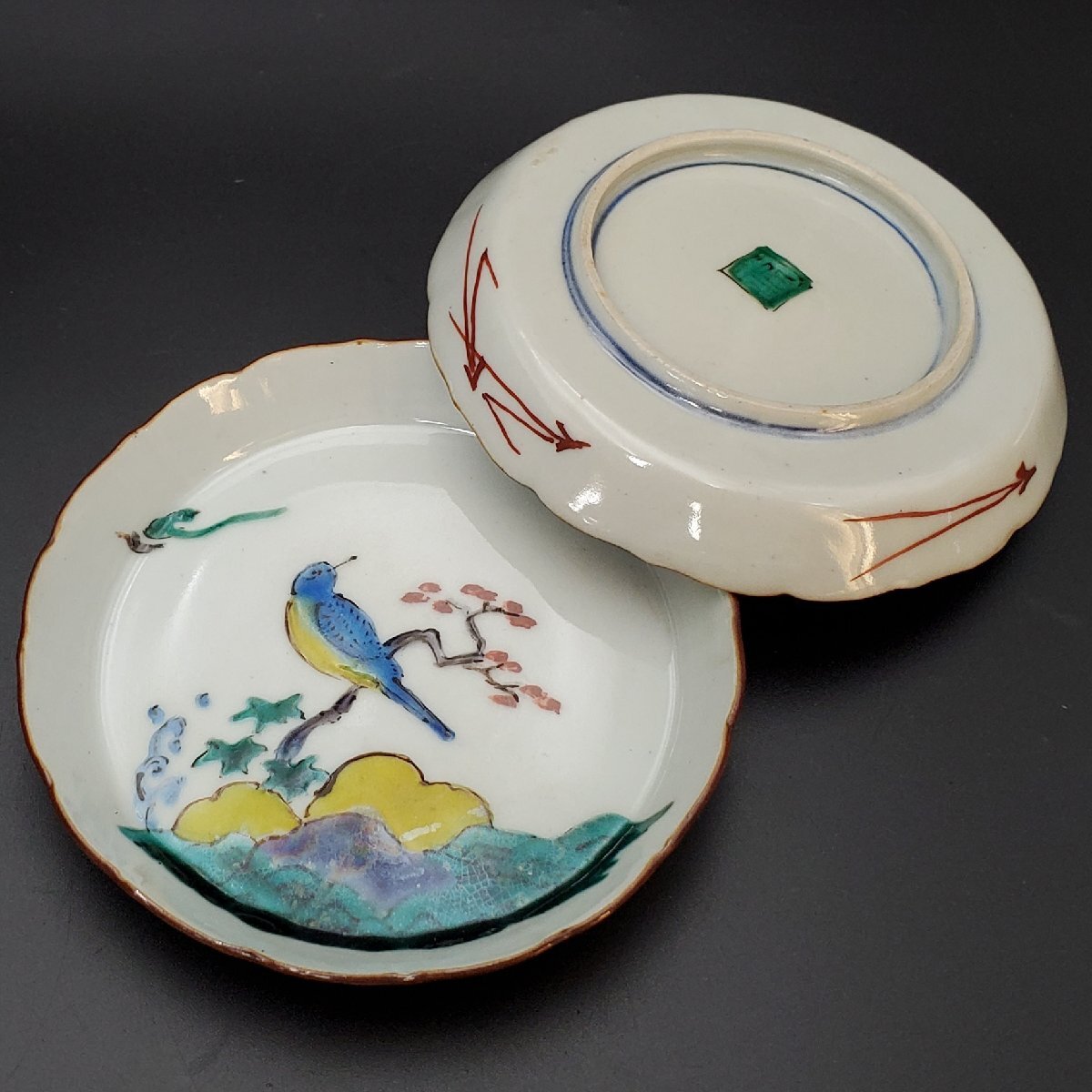 【宝蔵】時代物 九谷焼 花鳥色絵小皿 5客 約11.5cm ③