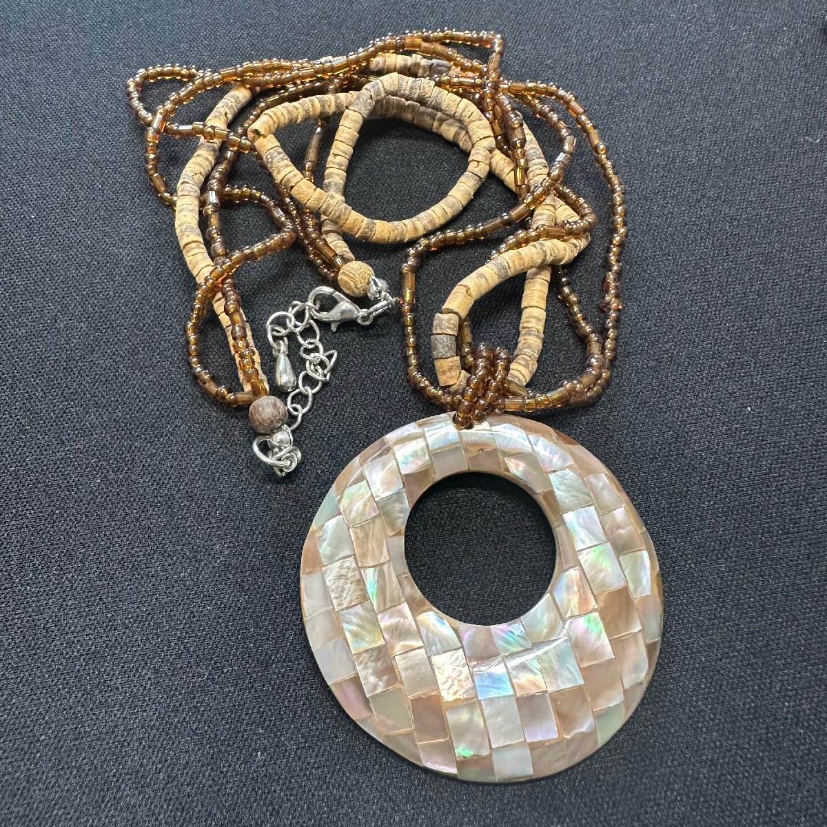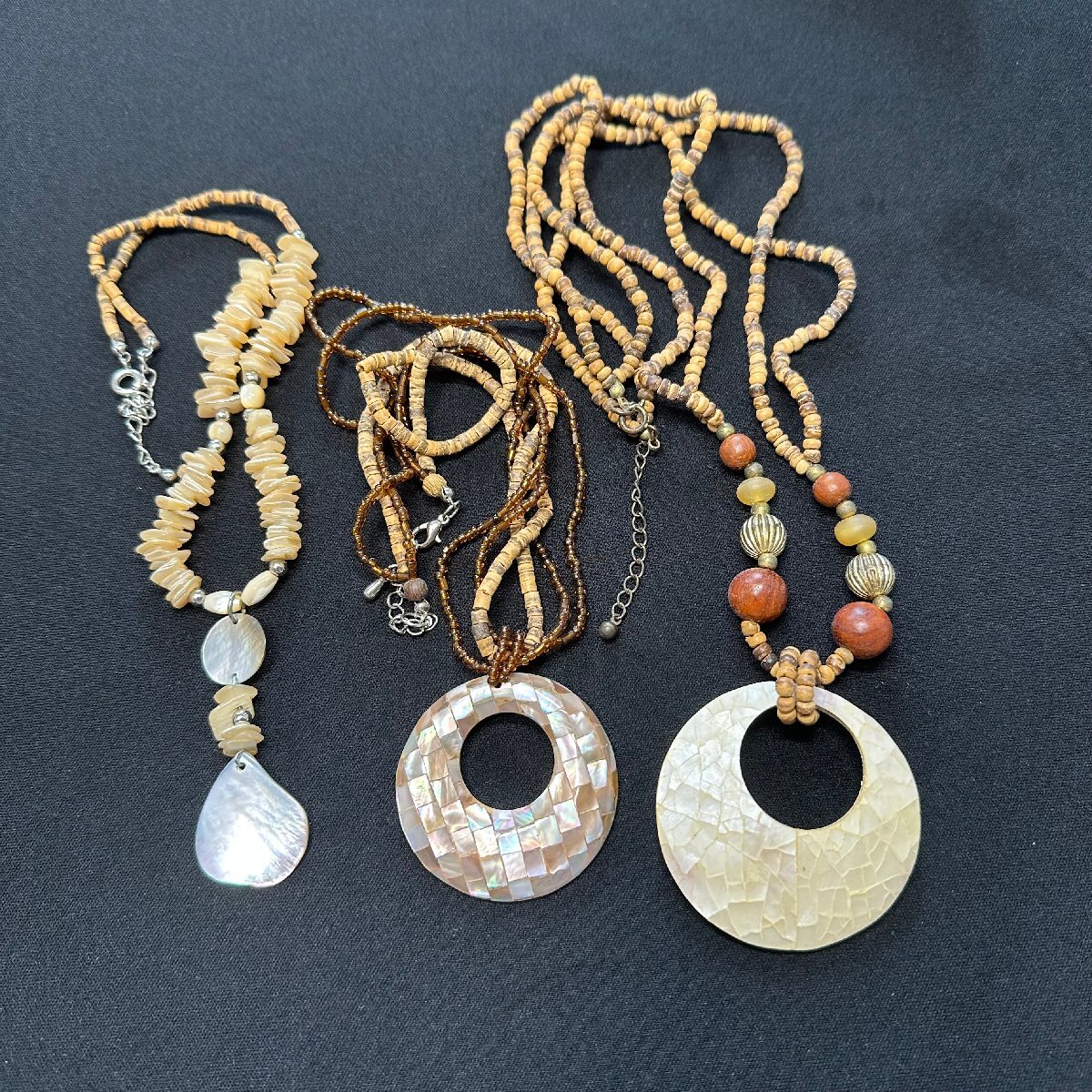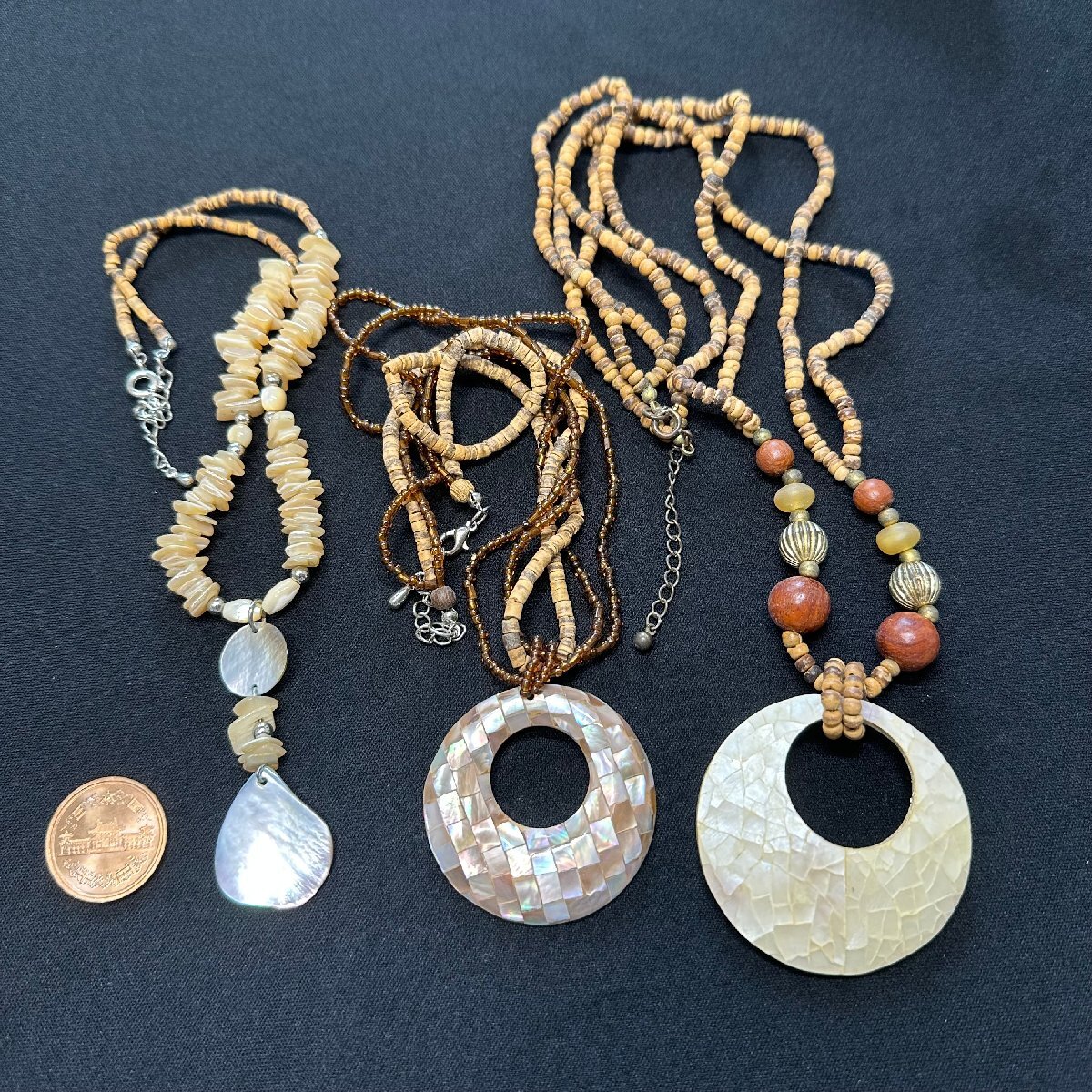 q4066 ヴィンテージ シェル 木製 ネックレス ペンダント アクセサリー 和風 レディース エスニック まとめ売り