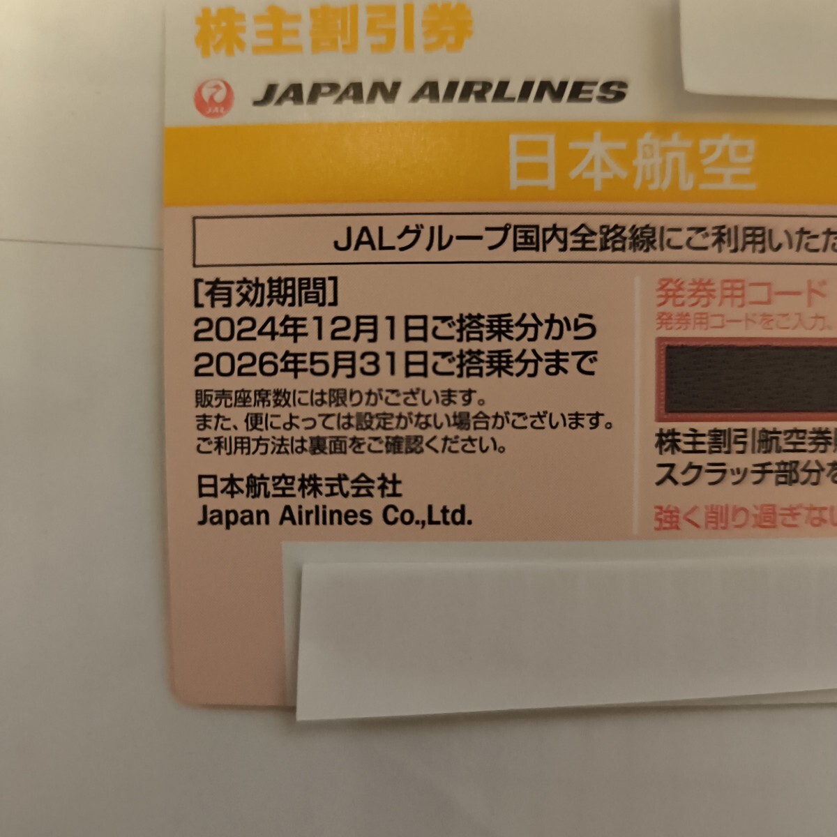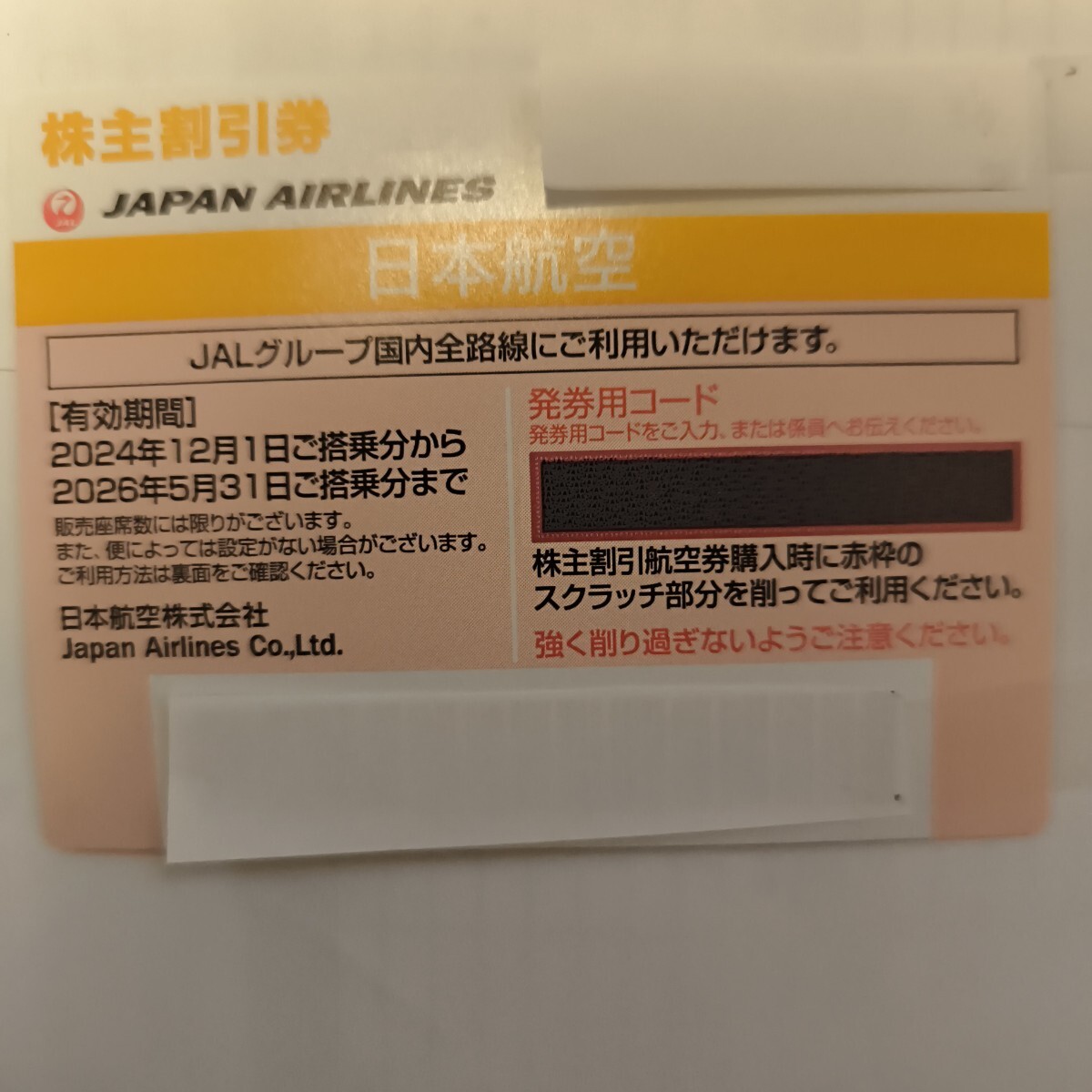 日本航空(JAL)株主割引券 2026年5月31日搭乗分まで有効 1枚となります。