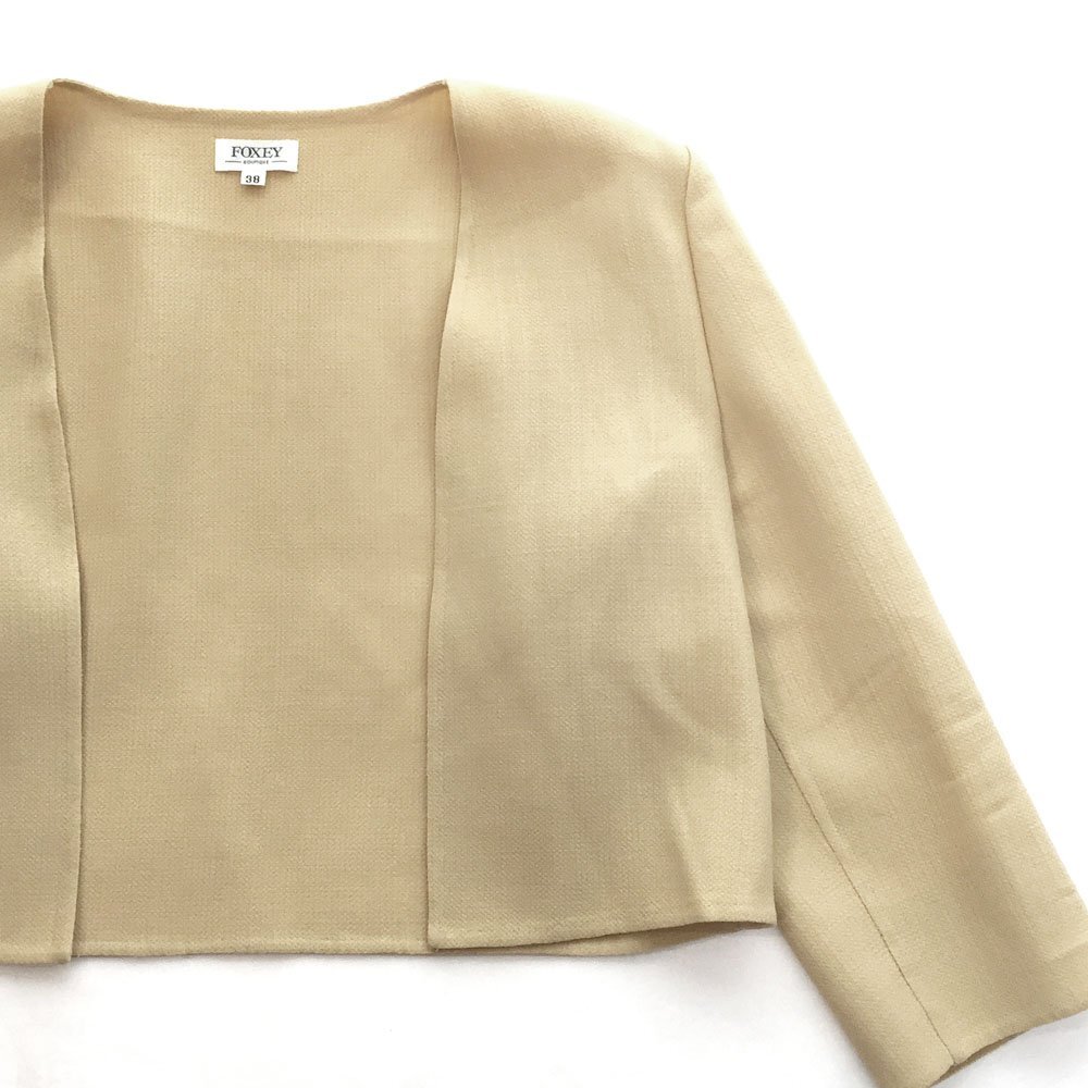 コメント | フォクシーは知性・ 品位・清潔感を大切に、一貫したものづくりをし、強く生きる女性が袖を通す服を展開する大人気の高級ブランドです。 7分袖のショート丈ジャケット。薄めのウール生地です。裏地は付いておりません。春夏を中心に活躍します。管理番号93860のワンピースとセットアップで着用いただけます(販売済の場合はご容赦ください)。 状態はUSEDです。経年、使用感はありますが、目立つような汚れやキズはありません。全体的にキレイです。ご理解のある方の入札をお待ちしております。 |