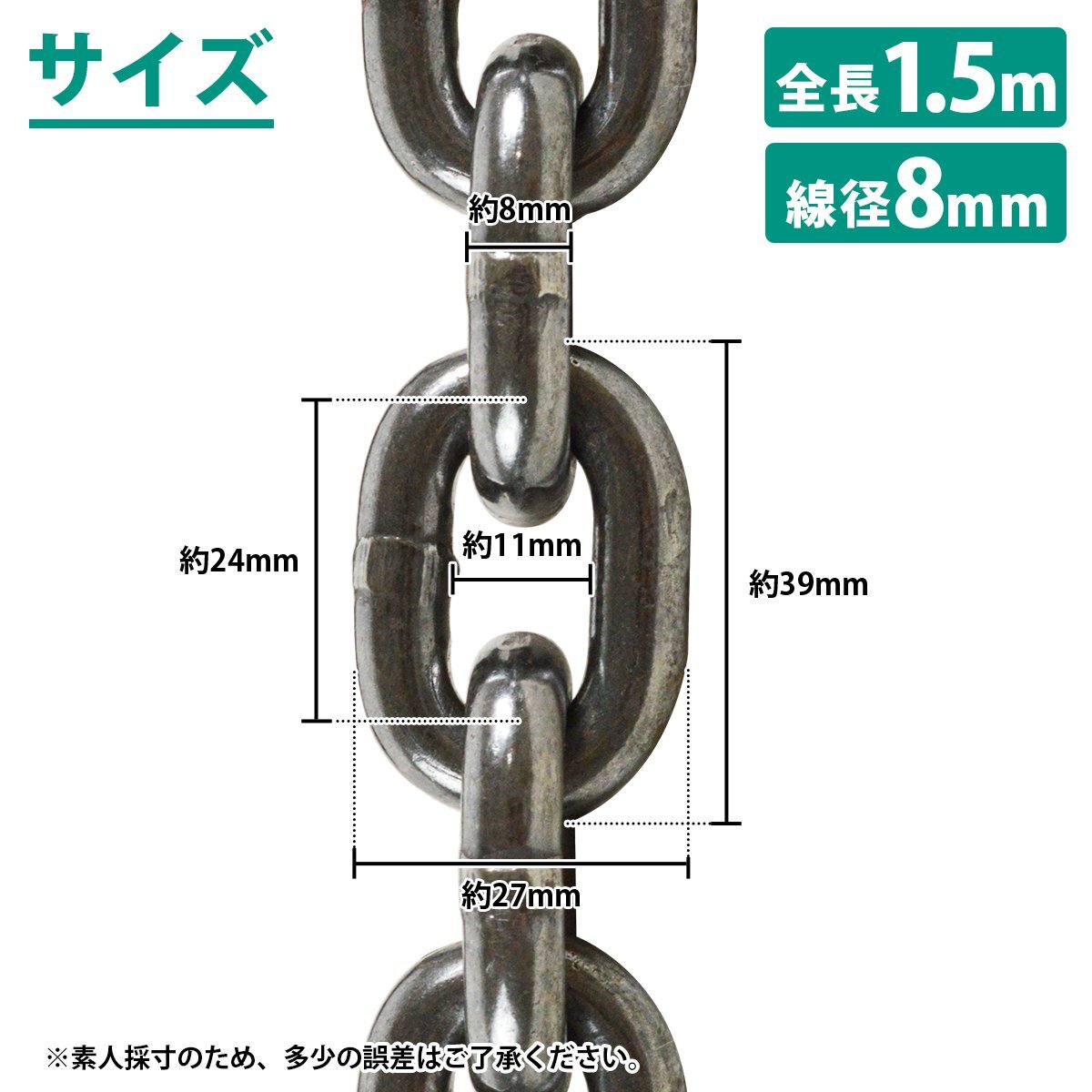 1本 全長1.5m 線径 8mm 2t チェーンスリング 鎖 鋼チェーン 予備 交換 チェーン 長さ 1500mm 150cm 径 0.8cm スリング チェン