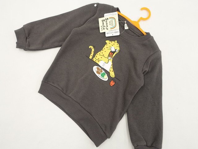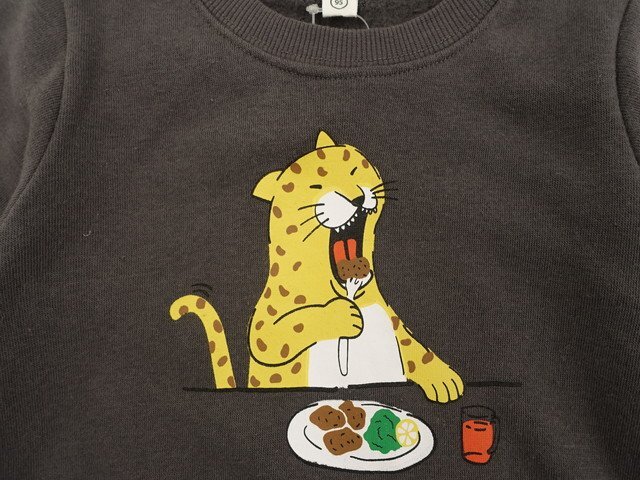 長袖 クルーネック 裏起毛トレーナー 95 ダークグレー地 豹柄プリント