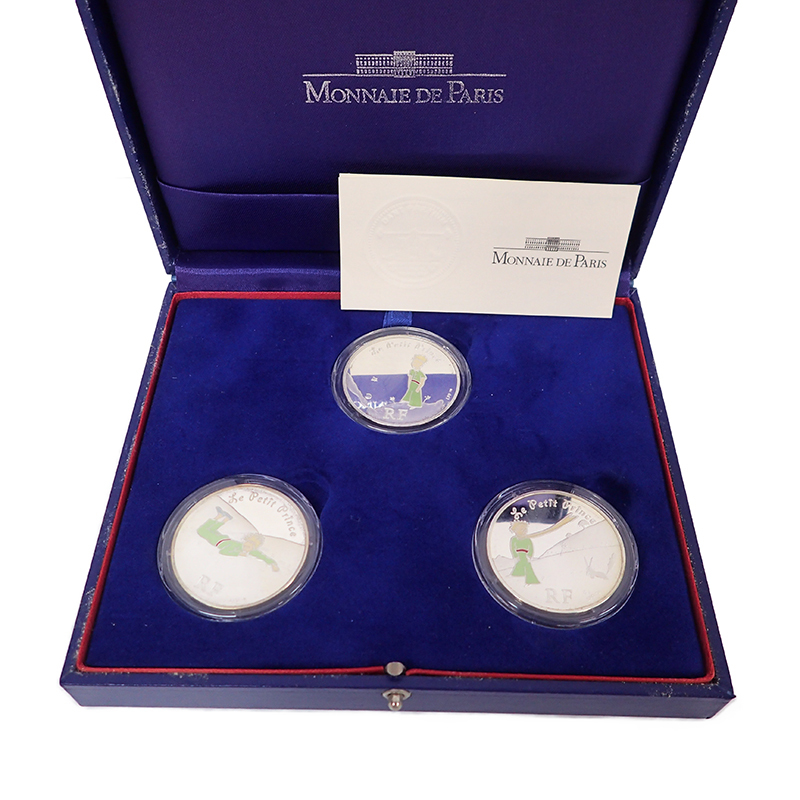 【商品名】 3QW 銀貨 星の王子さま シルバーコイン 3種セット ケース付き 2007年 パリ造幣局 限定品 66.6g シリアルNo,1682/3000 ??1?1/2銀貨(1ユーロ50セント)銀貨 重量:22.2g /1枚 直径:37 mm 品位:銀90% 【状態】 中古品。 一部、経年による変色がございます。 細かいコンディションに関しましては、画像にてご確認下さいませ。 中古品につき細かい部分で気になさる方は入札をお控えくださいませ。 【発送】 発送は佐川急便、送料元払いのみの対応とさせていただいております。 ≪北海道≫ (北海道)1,440円 ≪北東北≫ (青森・秋田・岩手)1,040円 ≪南東北≫ (宮城・山形・福島)910円 ≪関東≫ (茨城・栃木・群馬・埼玉・千葉・東京・神奈川・山梨)910円 ≪信越≫ (長野・新潟)910円 ≪東海≫ (静岡・愛知・岐阜・三重)910円 ≪北陸≫ (富山・石川・福井)910円 ≪関西≫ (京都・滋賀・奈良・和歌山・大阪・兵庫)1,040円 ≪中国≫ (岡山・広島・山口・鳥取・島根)1,180円 ≪四国≫ (香川・徳島・高知・愛媛)1,300円 ≪九州≫ (福岡・佐賀・長崎・大分・熊本・宮崎・鹿児島)1,440円 ≪沖縄≫ (沖縄)1,450円 (沖縄のみ、ゆうパックを利用させて頂きます。) |