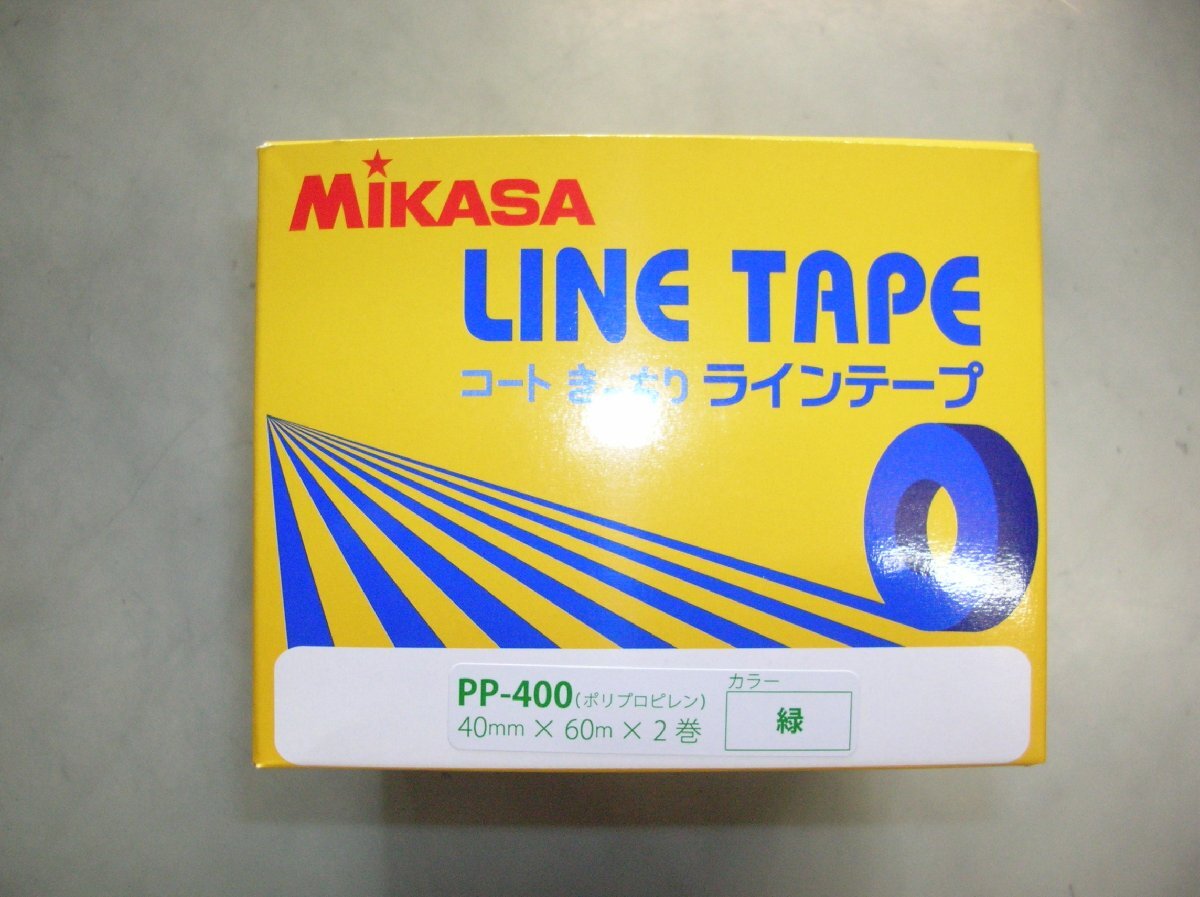 ミカサ【コートきっちりラインテープPP-400】40mm×60m×2巻★緑★伸びないタイプ★カッター付き★MIKASA