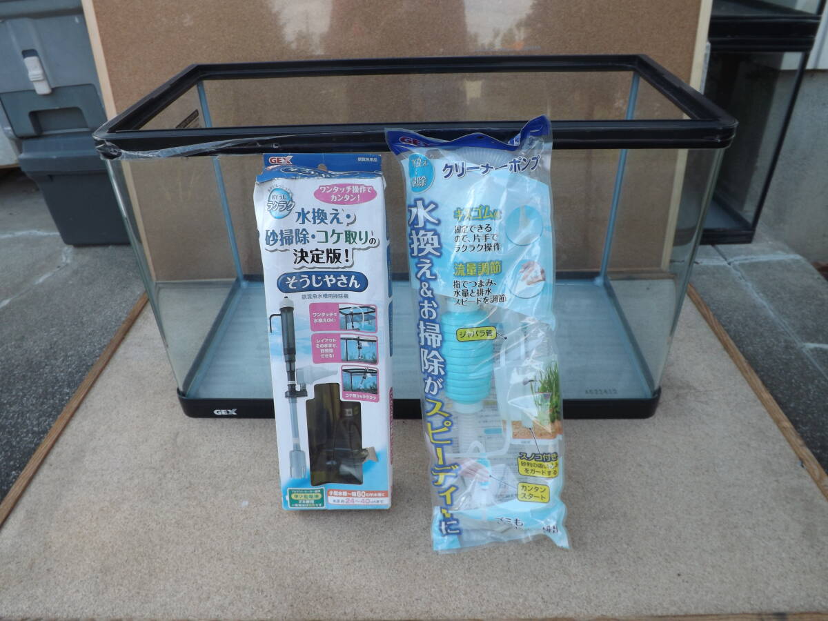 未使用品●GEX●3種3品set●【①】ラピレス.RV60N.曲げガラス60cm水槽【①】そうじやさん.ポンプ.乾電池式【①】アルジー90.コケ&汚れ取り
