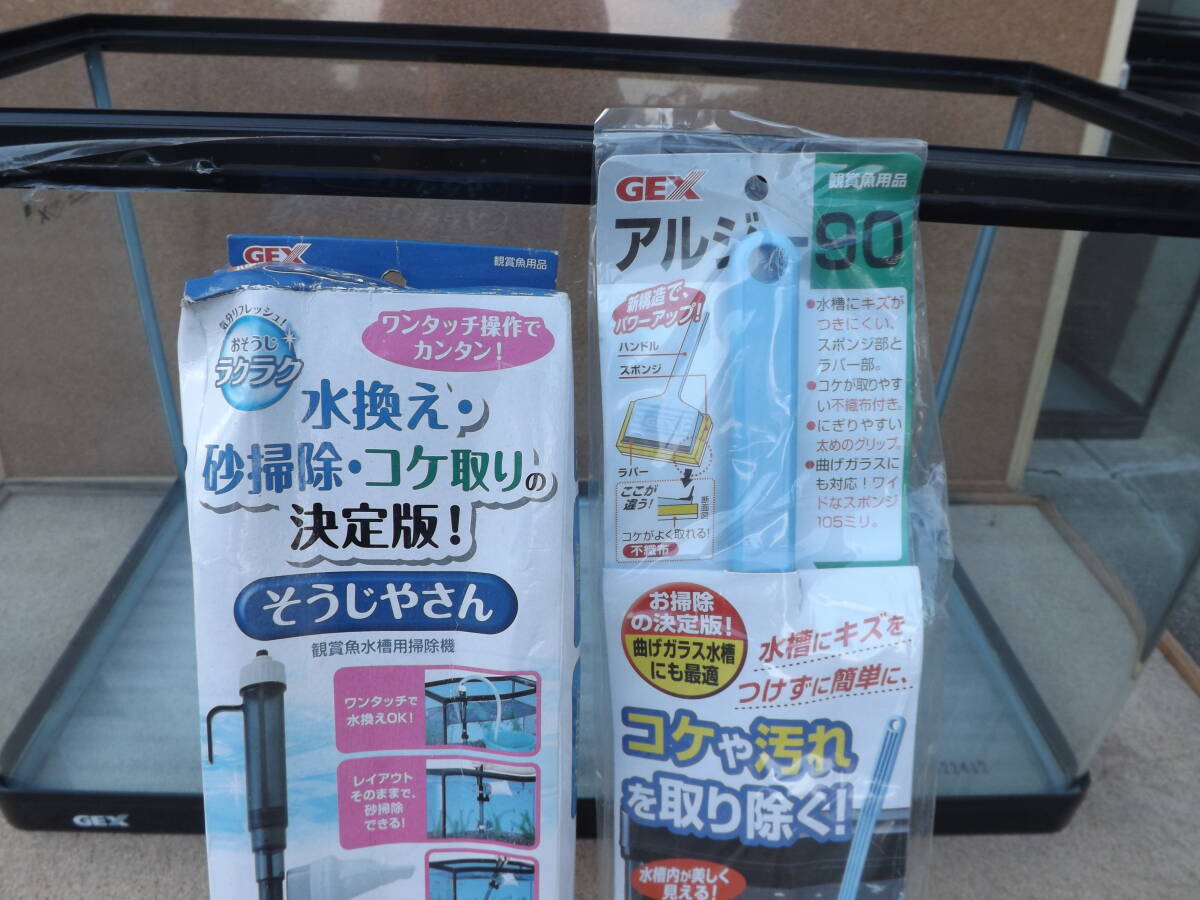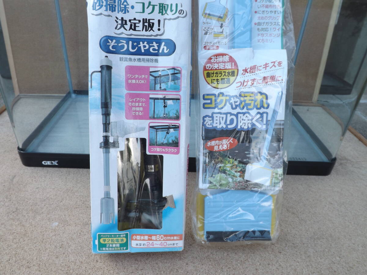 ■未使用品 GEX 3種3品set【①】ラピレス RV60N 曲げガラス水槽【①】そうじやさん.ポンプ.乾電池式【①】アルジー90.コケ&汚れ取り 詳細細は画像.説明文で御願い致します