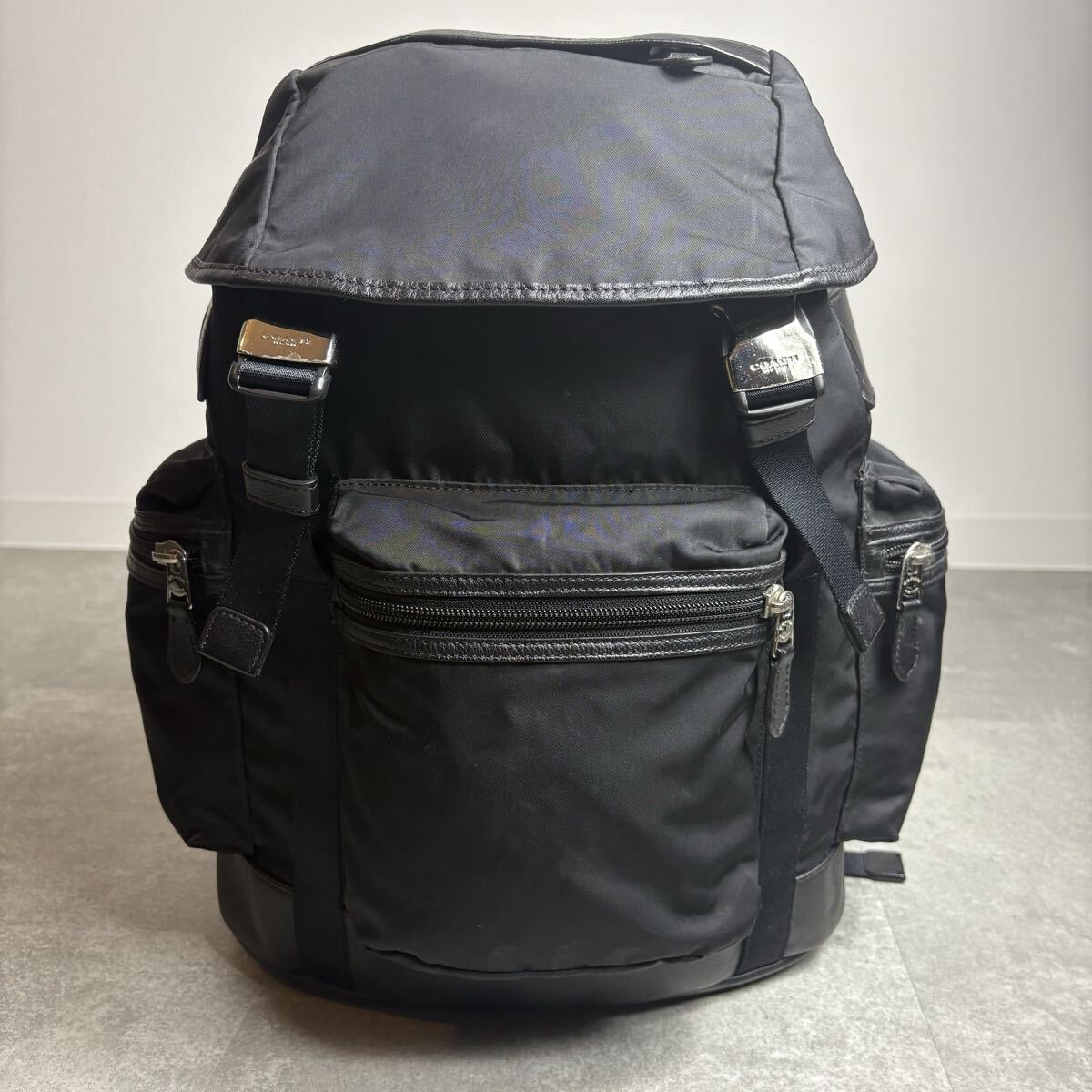 美品◎ コーチ COACH バックパック リュック リュックサック 黒 ブラック レザー ナイロン ビジネス メンズ 大容量 A4 ブラック 黒