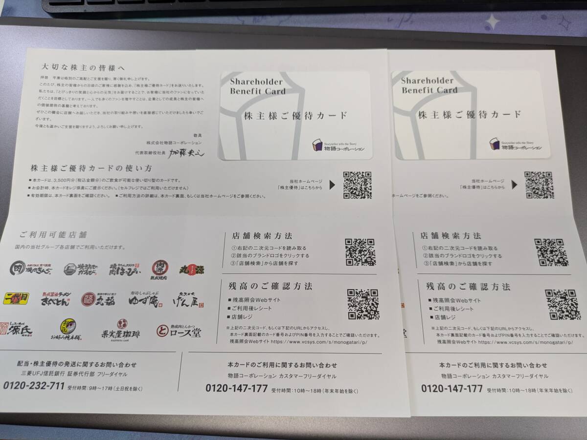 ★☆★物語コーポレーション・株主優待券7,000円(3,500円×2)・送料込 ★☆★