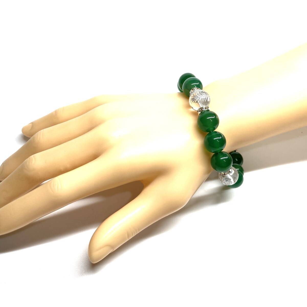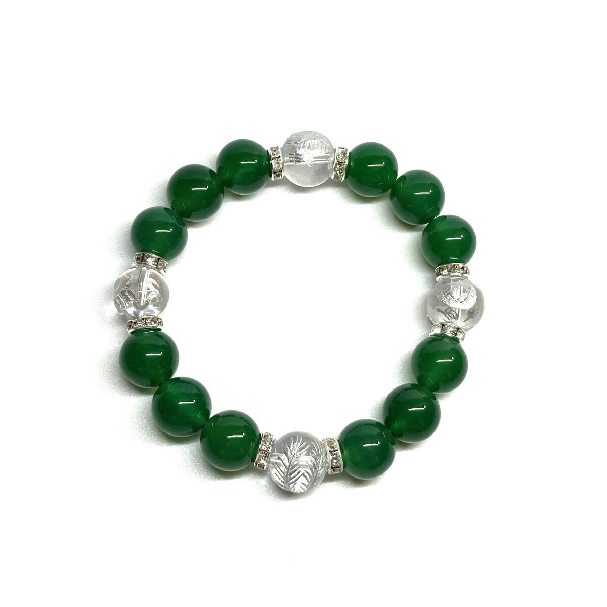 四神獣銀彫水晶×緑瑪瑙 12mm パワーストーン ブレスレット天然石 青龍 白虎 玄武 朱雀 運気上昇 お守り 金運 健康運 四神獸 四神相応 S