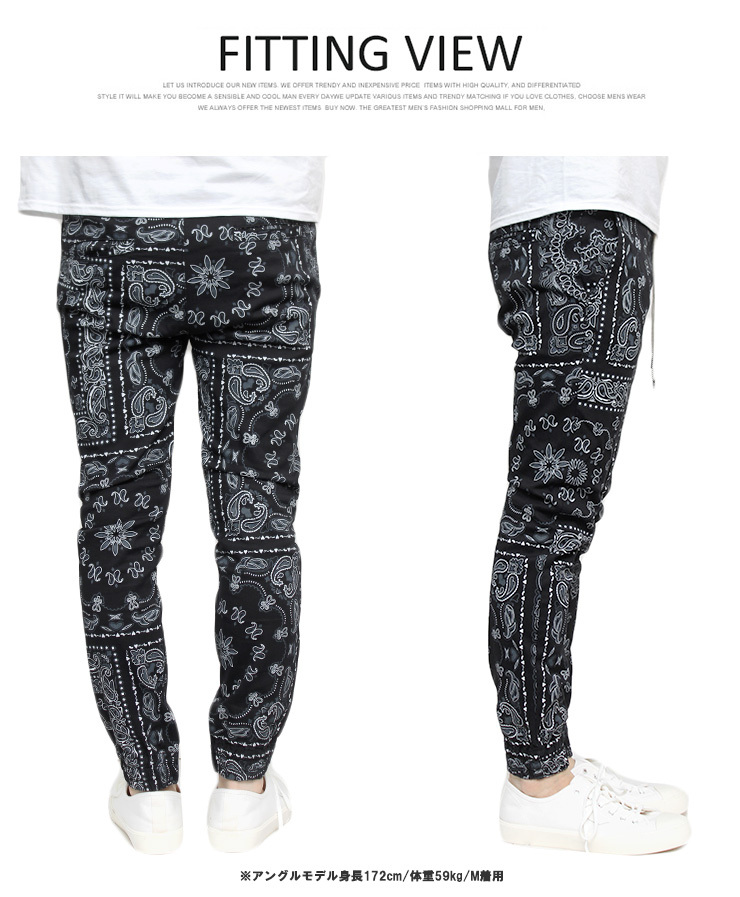 | 商品名 | 【新品】 XL ブラック ジョガーパンツ メンズ バンダナ ペイズリー柄 ストレッチ スリム リブ アンクルパンツ |