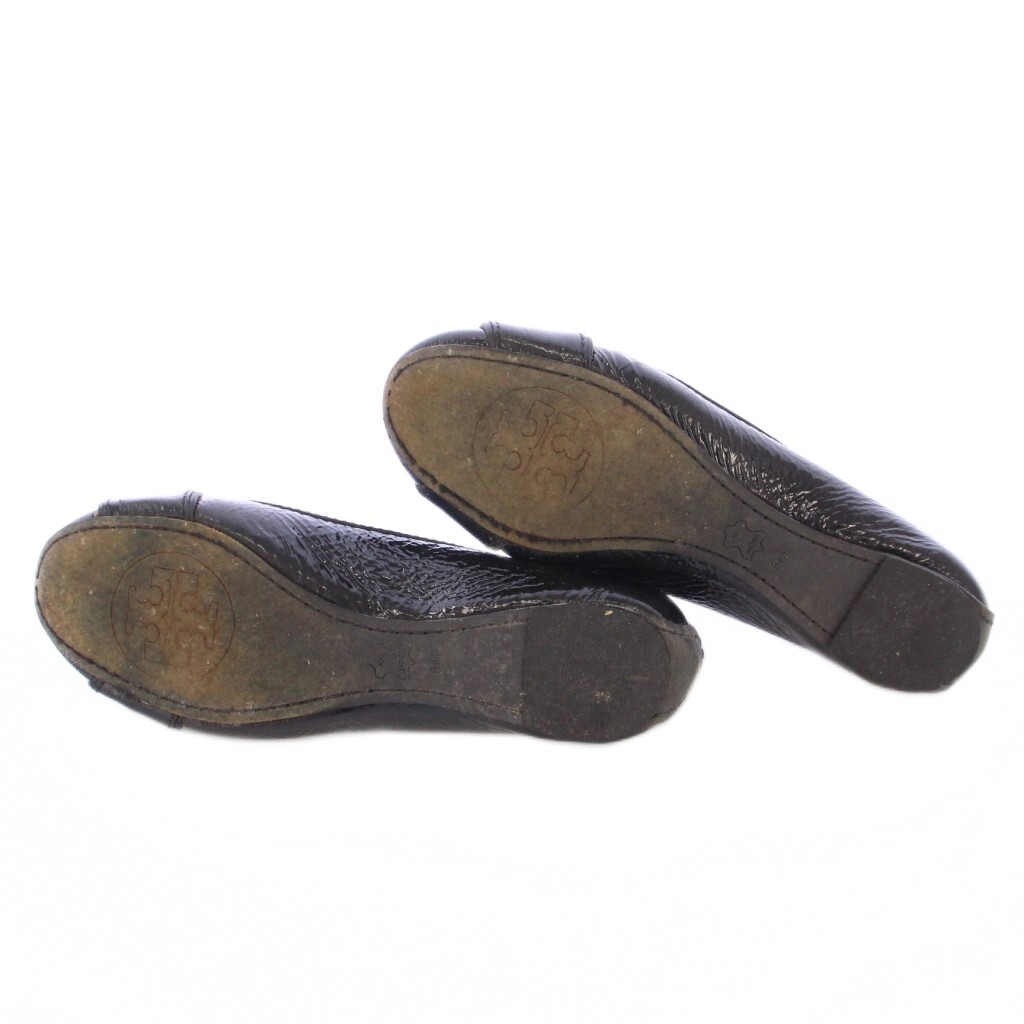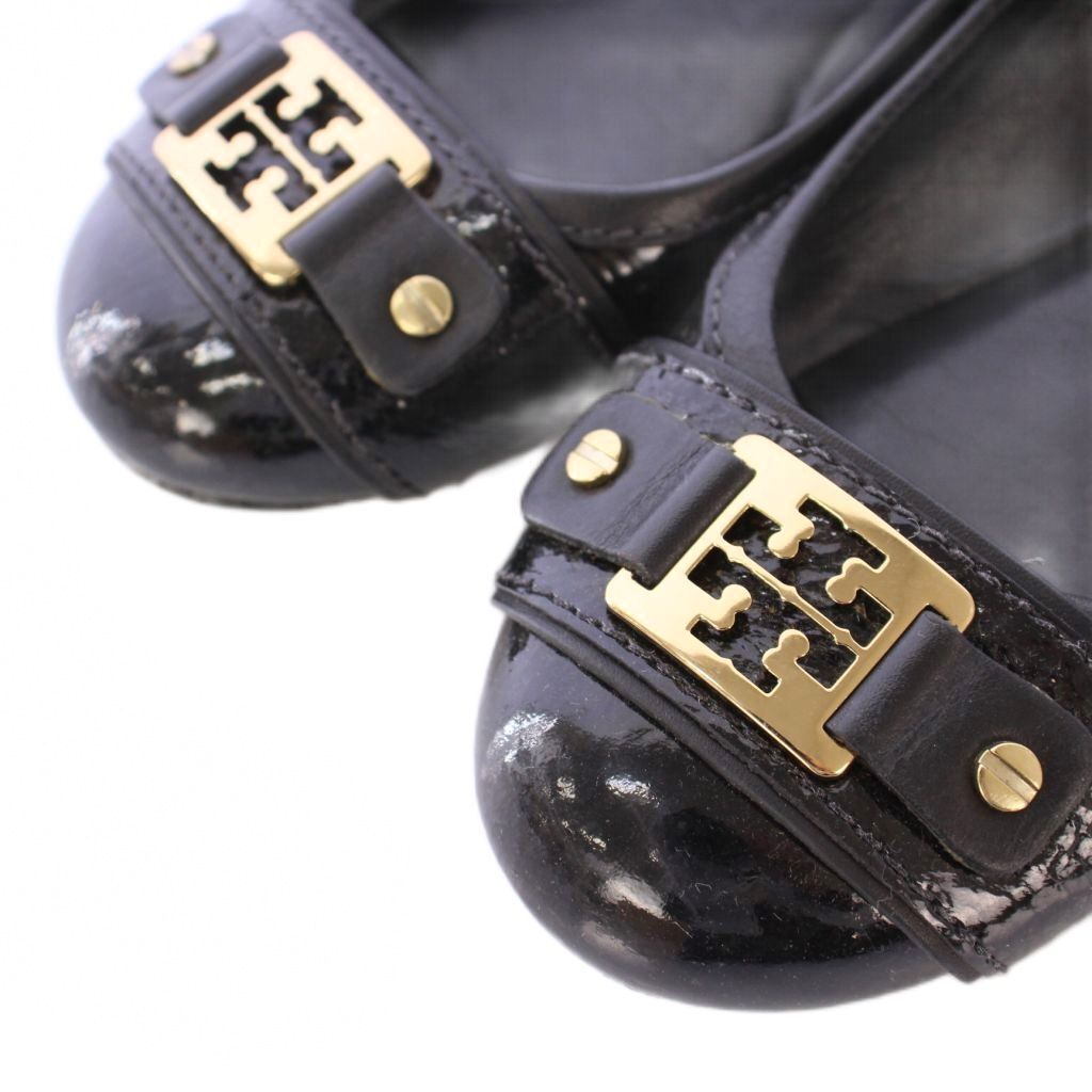 トリーバーチ TORY BURCH フラットシューズ パンプス ラウンドトゥ ロゴ バイカラー 6M 黒 ブラック ゴールドカラー /BB レディース