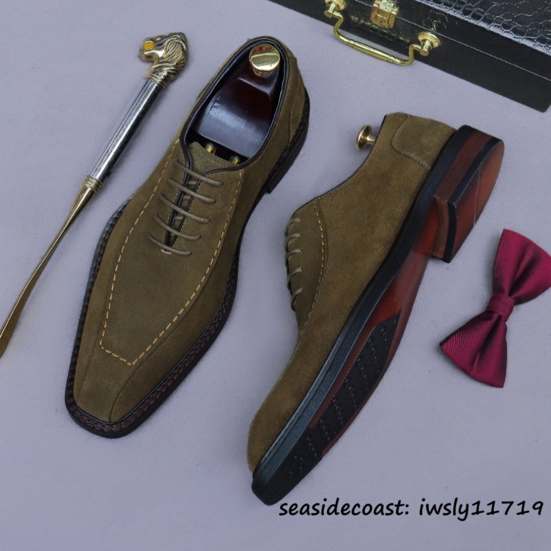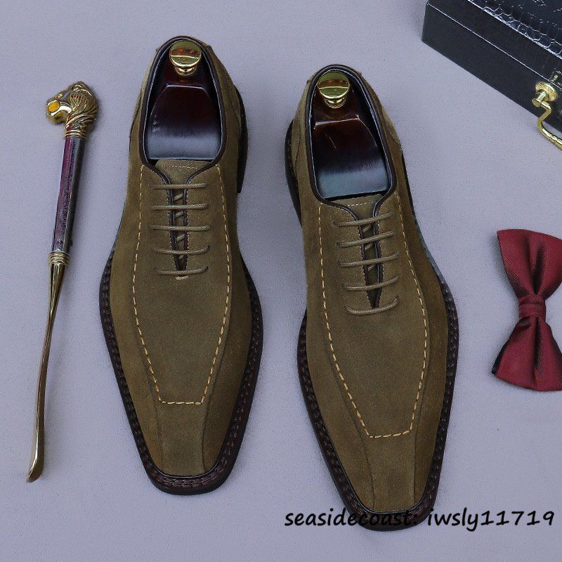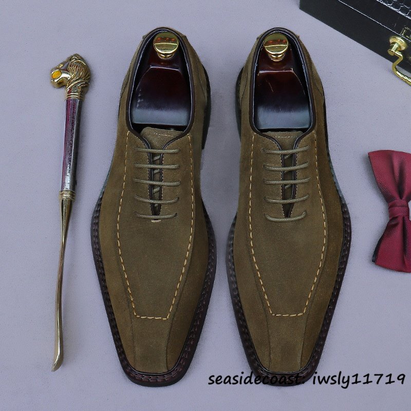 定価10万超◆最高級 ビジネスシューズ メンズ スエード革 本革 レザーシューズ 職人手作り 紳士靴 革靴 牛革 宴会 結婚式 ブラウン 25.0cm