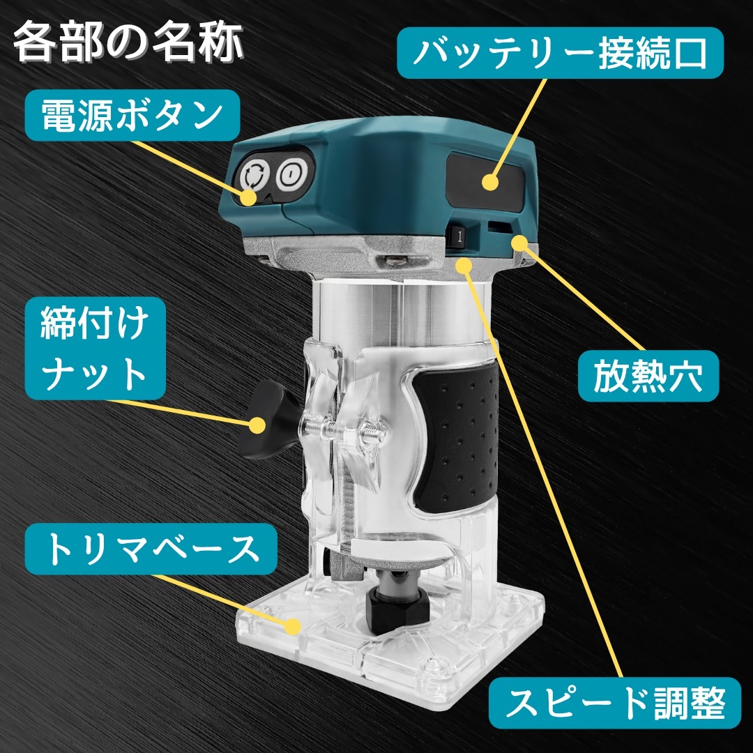A マキタ 互換 充電式 トリマー 18V 14.4V 工具 トリミング コードレス 電動 木工用 面取り 円加工 ルーター バッテリー対応 ビット 6.35mm