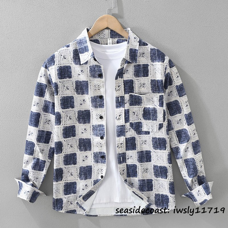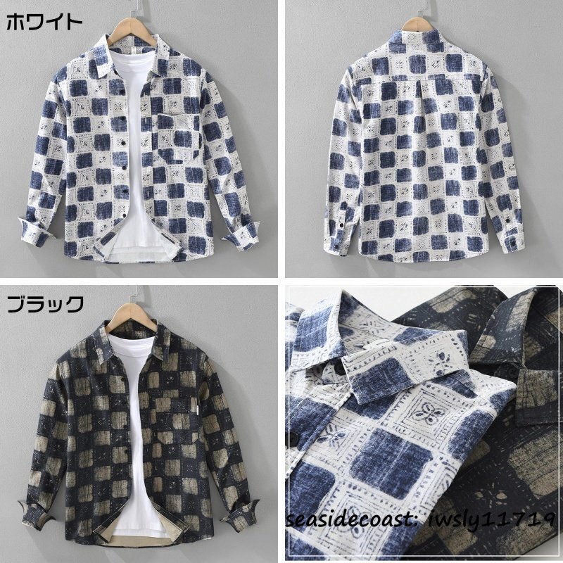 新品特売*デニムシャツ チェック柄 長袖シャツ 春夏秋 アウター メンズシャツ コットン ウエストシャツ デニムジャケット ホワイト L