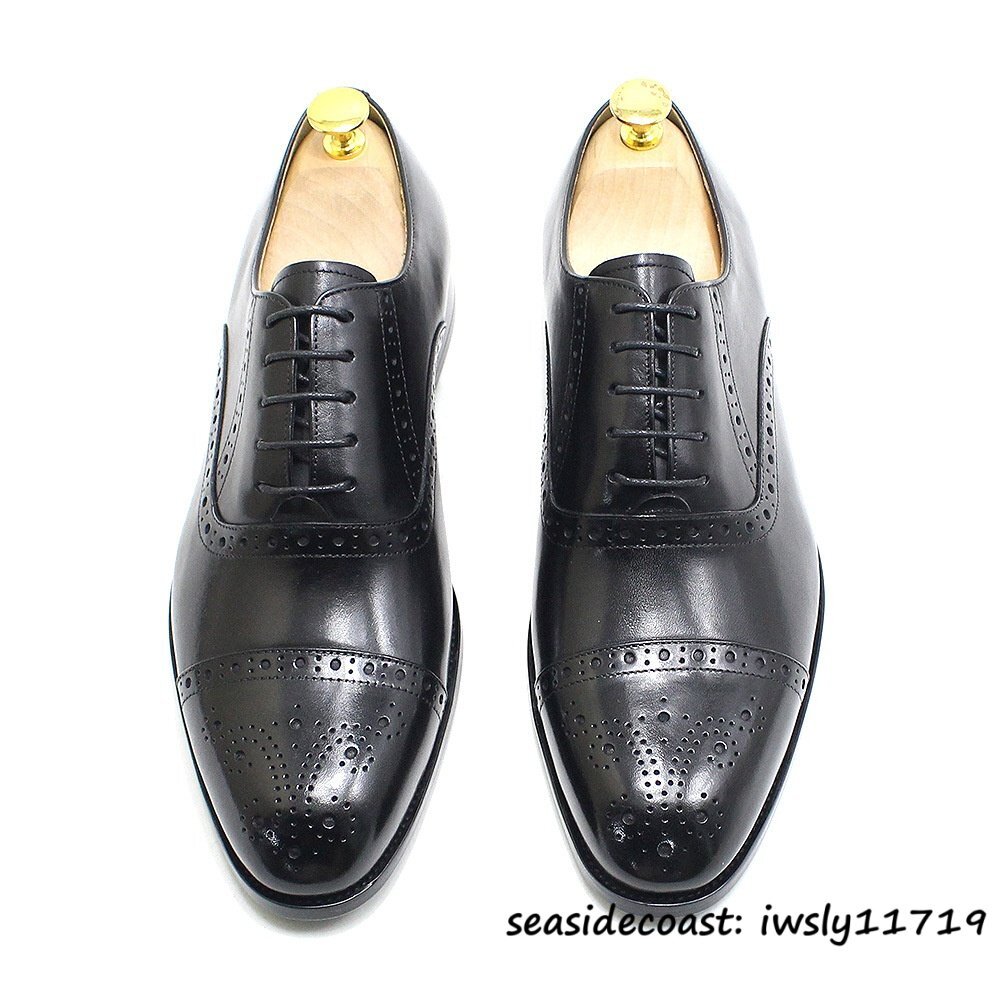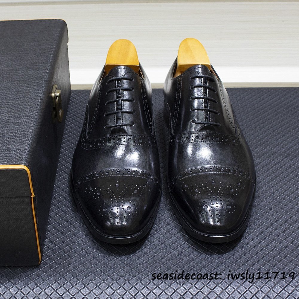 最高級★定価11万超 メンズ ビジネスシューズ 本革 レザーシューズ 職人手塗仕上げ 超希少 牛革 紳士靴 フォーマル 革靴 ブラック 25.0cm
